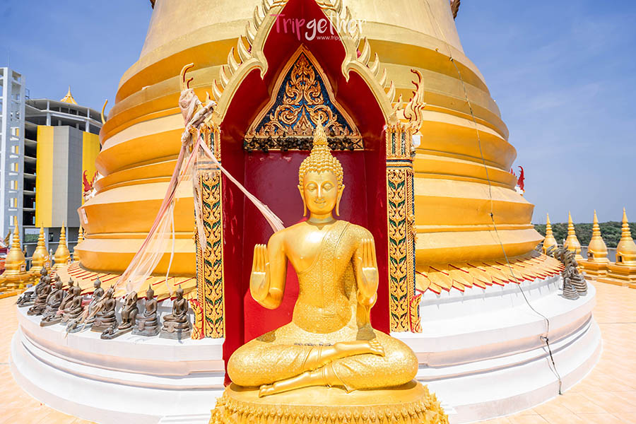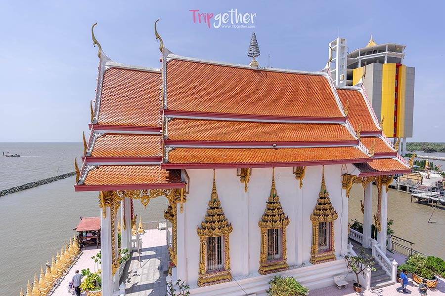 มาเริ่มต้นที่หนึ่งจุดเช็คอินสุดอันซีนอย่าง วัดหงษ์ทอง หรือวัดกลางน้ำ อีกหนึ่งจุดพักผ่อนหย่อนใจที่ชาวบ้านและนักท่องเที่ยวใช้ที่นี่เป็นแหล่งยึดเหนี่ยวจิตใจอย่างไม่ขาดสาย วัดแห่งนี้ค่อนข้างแตกต่างจากที่อื่นๆ เพราะตั้งอยู่กลางทะเลและป่าชายเลน ด้านหน้าเป็นซุ้มพญานาค 9 เศียรและมีทางเดินทอดยาวไปยังมุมต่างๆ เข้าไปจะพบกับมุมรูปปั้นเรื่องเล่าพระอภัยมณีกลางน้ำ และถัดไปจะเป็นพระธาตุคงคามมหาเจดีย์ปรีชาประภากรองค์สีทองอร่าม ซึ่งภายในมีทั้งหมด 5 ชั้น ประดิษฐานพุทธรูปทั้งพระแก้วมรกต รอบพระบาทหลวงพ่อโสธร รวมถึงหุ่นขี้ผึ้งของหลวงปู่สด ส่วนด้านหลังมีระเบียงให้รับลมชมวิวกันแบบกว้างๆ 180 องศา และปิดท้ายต้องไม่พลาดไปชมจิตรกรรมฝาผนังในโบถส์กลางน้ำ ที่สวยงามไม่แพ้ใคร