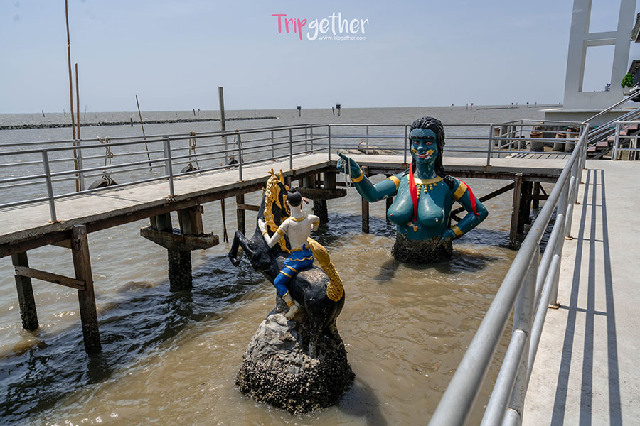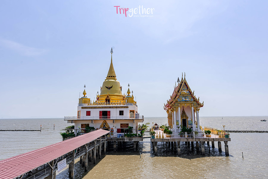 ปิดท้ายกันด้วยความอันซีนอีกสักหนึ่งที่ พระกลางน้ำ หรือที่หลายคนรู้จักกันในชื่อ ศาลาพระกลางน้ำ ศาลาแห่งนี้สร้างขึ้นเมื่อปี พ.ศ. 2541 ซึ่งเมื่อก่อนเป็นเพียงหอสังเกตุคุณภาพน้ำและเอาไว้เผ้าหอยแมลงภู่ จนเกิดการพังทลายและได้สร้างใหม่เลยนำ พระพุทธมหาสมุทร มาประดิษฐานและสร้างเป็นแหล่งท่องเที่ยว ซึ่งนักท่องเที่ยวสามารถนั่งเรือไปสักการะ และชมวิวชมธรรมชาติยามเย็นกันได้ด้วย โดยต้องสั่งอาหารกินที่ร้าน ครัวชายทะเลแล้วทางร้านจะพาไปชิลล์กันแบบฟรีๆ