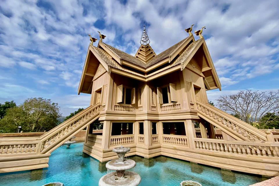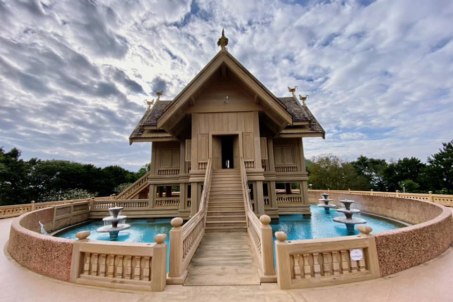 วัดเขาวันชัยนวรัตน์ อ.ปากช่อง จ.นครราชสีมา วัดสวยสุดอลังการที่โดดเด่นด้วยพระอุโบสถหินทรายลายไม้ รูปทรงสวยแปลกตา ออกแบบให้เป็นอาคาร 3 ชั้น ชั้นล่าง เป็นฐานที่ล้อมรอบไปด้วยสระน้ำสีฟ้า ชั้นกลาง เป็นที่สำหรับนั่งสมาธิและปฏิบัติธรรม และชั้นบนเป็นพื้นที่สำหรับทำสังฆกรรมของพระภิกษุสงฆ์ ซึ่งเป็นวัดที่มีอากาศเย็นสามารถมาท่องเที่ยวได้ทั้งปี ภายในพระอุโบสถมีรูปแกะสลักของหลวงปู่ชาและพระพุทธรูปประดิษฐานอยู่ภายใน เป็นีกหนึ่งวัดสวยสุดอันซีนที่ต้องไปสักการะและชมความงดงามให้ได้สักครั้ง