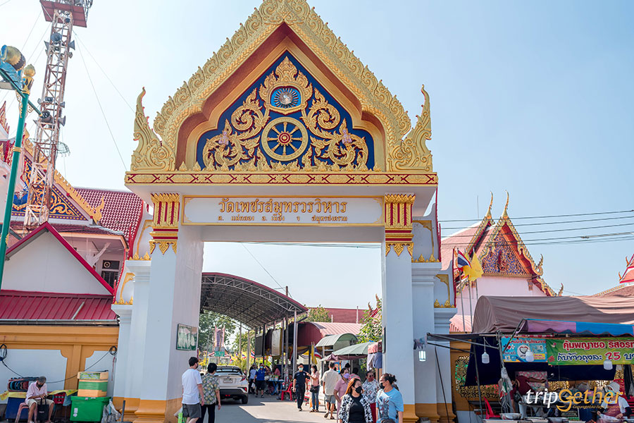 มาถึงอีกหนึ่งวัดสำคัญในจังหวัดสมุทรสงครามที่มีผู้คนหลั่งไหลไปไหว้พระขอพรจำนวนมาก วัดเพชรสมุทรวรวิหาร เดิมชื่อ วัดบ้านแหลม เป็นที่ประดิษฐานหลวงพ่อบ้านแหลม ที่เป็นที่เคารพศรัทธาและมีผู้คนแวะเวียนมาสักการะบูชาจำนวนมาก ถือได้ว่าเป็นพระพุทธรูปคู่บ้านคู่เมืองของจังหวัดสมุทรสงคราม หลวงพ่อวัดแหลมขึ้นชื่อเรื่องความศักดิ์สิทธิ์ เชื่อกันว่าหากได้มาสักการะปิดทองคำเปลวหลวงพ่อบ้านแหลม จะช่วยเสริมอำนาจบารมีแก่ชีวิต มีแต่ความเจริญรุ่งเรือง ขอพรสิ่งใดก็จะได้สมดังใจปรารถนา