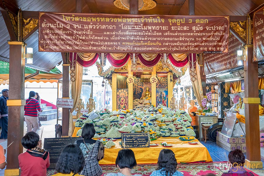 มาต่อกันกับ วัดพระธาตุดอยคำ หลายๆ คนมักเดินทางมาที่วัดพระธาตุดอยคำเพื่อมาขอพรกับ หลวงพ่อทันใจ ว่ากันว่าขออะไรก็จะได้สมใจปราถนาเหมือนดังชื่อหลวงพ่อทันใจ ถ้าเข้าไปในวัดจะสังเกตเห็นพวงมาลัยจำนวนมากที่คนนำมาถวายเนื่องจากคำขอสัมฤทธิ์ผลจึงทำให้หลวงพ่อทันใจมีชื่อเสียงแล้วมีคนเคารพศรัทธาเป็นจำนวนมาก นอกจากไหว้พระขอพรแล้ววัดพระธาตุดอยคำยังมีจุดชมวิวที่จะได้เห็นวิวทิวทัศน์ภูเขาโอบล้อมไกลสุดลูกหูลูกตา บอกได้เลยว่าบรรยากาศดีสุดๆ ยืนให้ลมเย็นๆ พัดมากระทบใบหน้าเย็นทั้งกายเย็นทั้งใจสุดๆ ไปเลย
