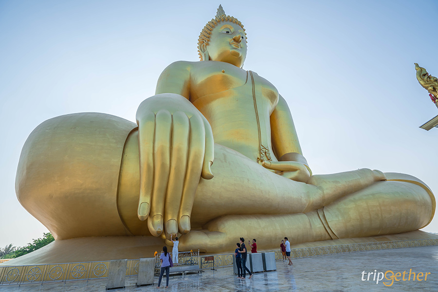 ขยับมาใกล้กรุงฯ กันดีกว่ากับ วัดม่วง วัดเก่าแก่และเป็นที่ศรัทธาของชาวจังหวัดอ่างทอง ภายในวัดเป็นที่ประดิษฐานพระพุทธมหานวมินทร์ศากยมุนีศรีวิเศษชัยชาญหรือที่หลายๆ คนเรียกกันว่าหลวงพ่อใหญ่ พระพุทธรูปปางมารวิชัยที่มีความสูงจากฐานองค์พระถึงยอดเกศา 95 เมตร เทียบเท่ากับตึก 32 ชั้น และมีความกว้างของหน้าตัก 63.05 เมตร อีกทั้งองค์พระพุทธรูปยังมีสีทองอร่ามงดงามเป็นอย่างมาก ผู้คนมักเดินทางไปสักการะบูชาโดยการแตะที่พระหัตถ์ขององค์พระ และขอพรให้มีความเจริญก้าวหน้าในหน้าที่การงาน นอกจากพระพุทธมหานวมินทร์ศากยมุนีศรีวิเศษชัยชาญแล้วภายในอุโบสถของวัดม่วงก็มีความงดงามและศักดิ์สิทธิ์ไม่แพ้กัน พลาดไม่ได้เลยเมื่อแวะไปจังหวัดอ่างทองต้องหาเวลาไปไหว้พระขอพรที่วัดม่วงเพื่อเป็นสิริมงคลให้กับชีวิต