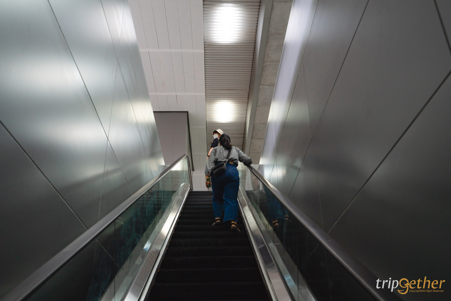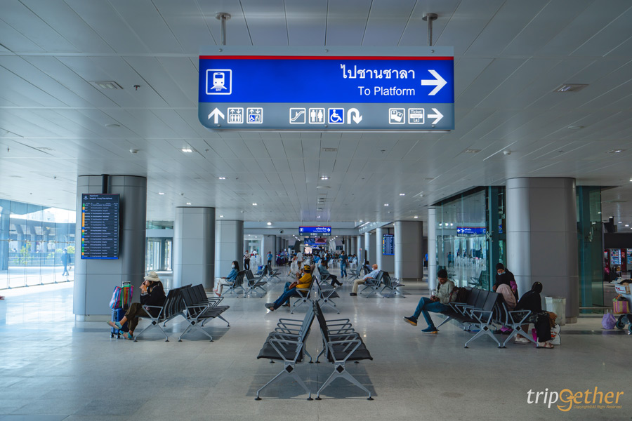 ได้ตั๋วแล้ว ก็เดินต่อมาด้านข้างของช่องจำหน่ายตั๋ว แล้วเข้ามาด้านในอีกชั้นที่จะเป็นโถงพักผู้โดยสาร จากนั้นก็เดินตามป้ายบอกทางไปที่ชานชาลาที่ 1 ได้เลย โดยชั้นที่เป็นชานชาลาที่ 1 จะต้องขึ้นบันไดเลื่อนไปอีกชั้น แต่ไม่ต้องกลัวหลง เพราะแต่ละจุดจะมีเจ้าหน้าที่คอยประกาศและบอกทางให้พร้อม