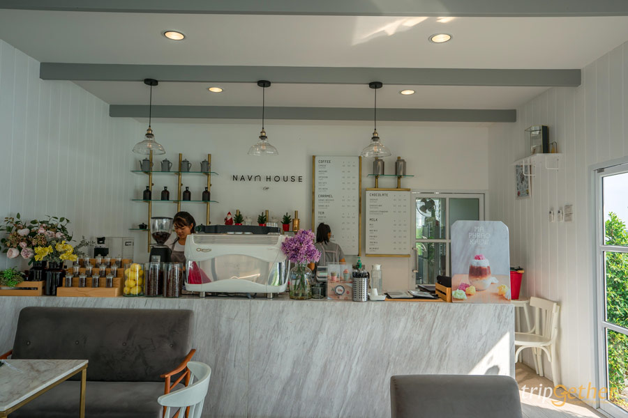 นาวาเฮ้าส์ คาเฟ่ ร้านคาเฟเล็กๆ โทนขาวมินิมอลน่ารักริมน้ำบางปะกง ที่นี่มีขนมหวาน เค้ก และเครื่องดื่มให้เลือกหลายเมนู แนะนำเมนูขนมหวานอย่าง บานอฟฟี่แพนเค้ก เค้กเรดเวลเว็ด ทูน่าเมลท์ บานาน่า นูเทลล่า เฟรนช์โทสต์ และเค้กเผือก บอกเลยอร่อยทุกเมนู สายหวานถูกใจสิ่งนี้แน่นอน ส่วนใครที่พาน้องหมา แมวมาด้วยสามารถเข้าโซน outdoor ได้นะ