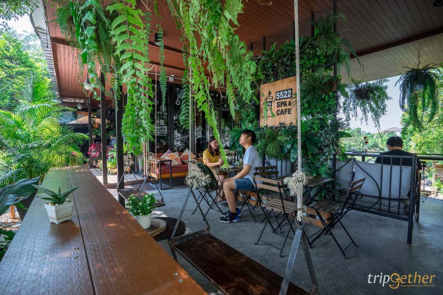 5522 คาเฟ่ คาเฟ่บรรยากาศชิลล์ๆ ที่ได้ชื่อร้านมาจากเลขที่บ้าน ตัวร้านมีขนาดกระทัดรัดตั้งอยู่ท่ามกลางต้นไม้ที่ร่มรื่นและยังมีสระบัวให้นั่งกินลมชมวิวกันแบบเพลินๆ โดยที่นั่งแบ่งเป็น 2 โซนคือ โซนห้องแอร์และโซนเอ้าท์ดอร์ สำหรับเมนูเครื่องดื่มมีทั้งเมนูชา กาแฟ และอิตาเลี่ยนโซดา อีกทั้งยังมีเมนูเบเกอรี่เอาใจสายหวานอีกด้วย และที่พลาดไม่ได้เลยก็คือ เค้กมันม่วง เค้กเนื้อนุ่มที่เสิร์ฟในกล่องไม้สุดน่ารัก