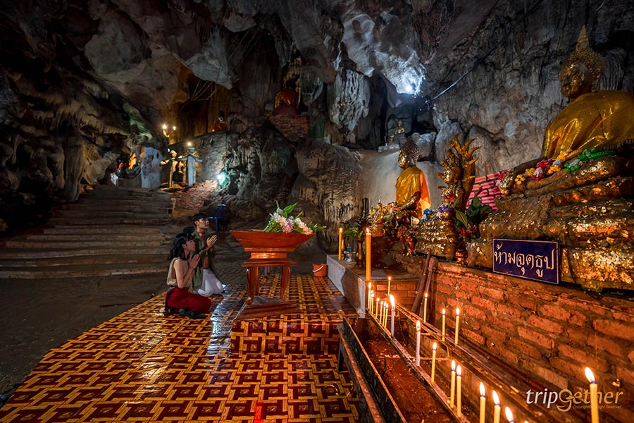 จากภาคเหนือน้องเป็ดไปกันที่ราชบุรี ไปเที่ยววัดกลางป่าสวยสุดอันซีนที่วัดถ้ำน้ำ เป็นถ้ำหินแกรนิตเพดานสูง มีประติมากรรมหินงอก หินย้อยตามจุดต่างๆ ด้านในจะมีเสาหินต้นใหญ่ที่เป็นหินย้อยลงมา ภายในประดับด้วยไฟสีต่างๆ เพิ่มความสวยงามให้กับภายในโถงถ้ำ และอีกไฮไลท์ที่ห้ามพลาด คือ การสักการะพญานาคองค์ใหญ่สีขาว นอกจากนี้ยังมีจุดไหว้สิ่งศักดิ์สิทธิ์ให้สักการะอีกหลายจุด นอกจากการเดินเที่ยวชมภายในถ้ำแล้ว ยังมีฝูงปลาแหวกว่ายภายในถ้ำเพิ่มชีวิตชีวาให้กับถ้ำน้ำแห่งนี้ได้อีกด้วย
