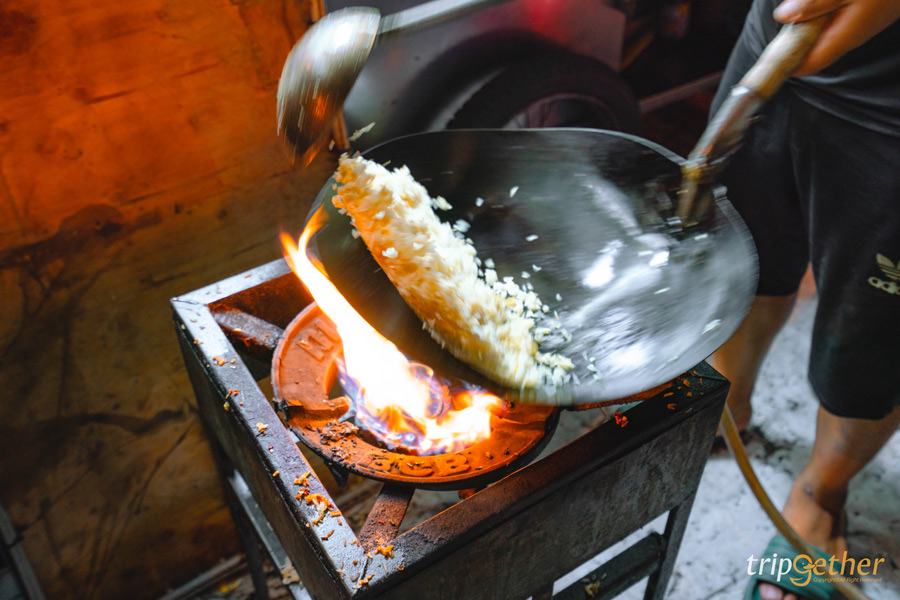 มาต่อกันกับร้านข้าวผัดปู ร้านนี้กิมมิคอยู่ที่เทคนิคการผัดข้าว สนุกสุดๆ ผัดได้ถึงใจมาก เมนูก็มีให้เลือกเพียบข้าวผัดปู ข้าวผัดกุ้ง หรือจะเป็นข้าวผัดปลาหมึก แถมยังให้เยอะด้วย จริงๆ ข้าวผัดอย่างเดียวก็อิ่มยาวเลยแหละ
