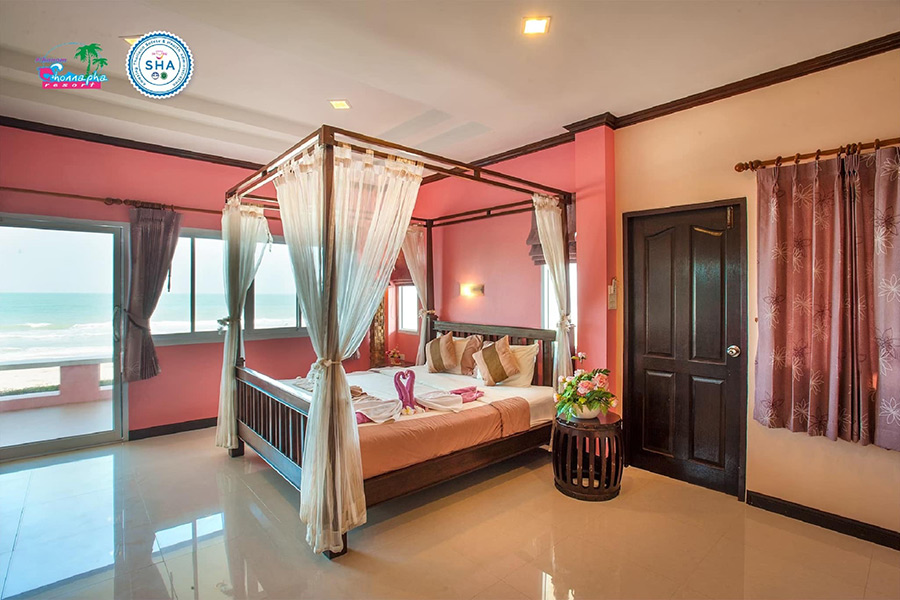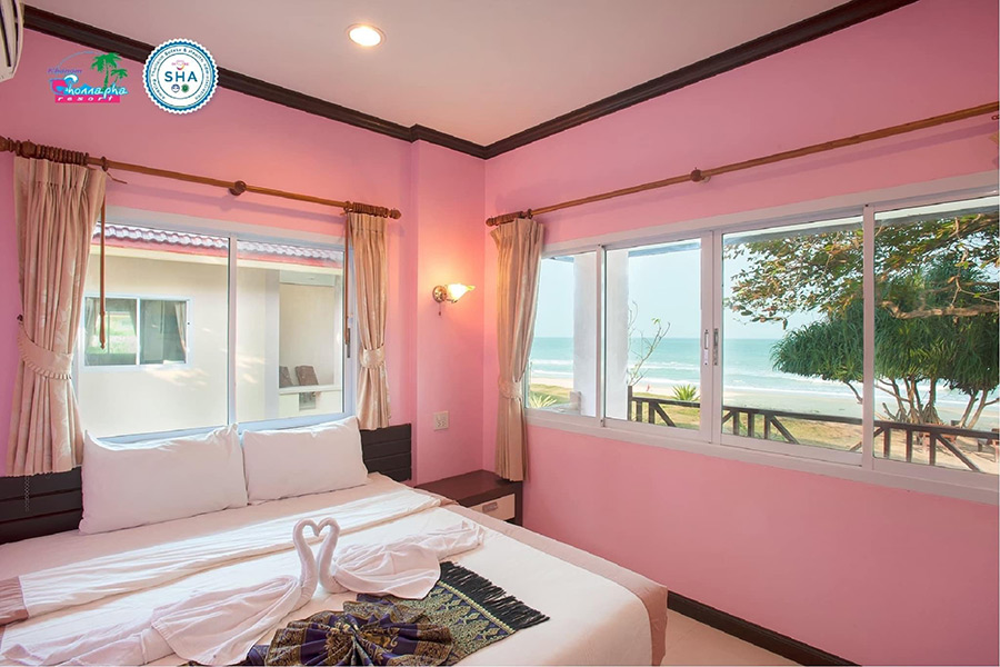 Chonnapha Resort ที่พักสบายๆ สไตล์โมเดิร์น มีห้องพักให้เลือกทั้งแบบ 2 ท่านและ 4 ท่าน ไม่ว่าจะมานอนกับแฟนสบายๆ หรือมาพักผ่อนกับครอบครัวก็ฟินแน่นอน ภายในห้องพักมาพร้อมการตกแต่งเรียบง่ายเน้นความโปร่งแสงให้พักผ่อนสบาย สามารถมองเห็นวิวสวยๆ ของท้องทะเล อีกทั้งยังอยู่ติดทะเลเหมาะมานอนพักผ่อนจัดสังสรรค์ริมทะเลเบาๆ ฟินแน่นอน