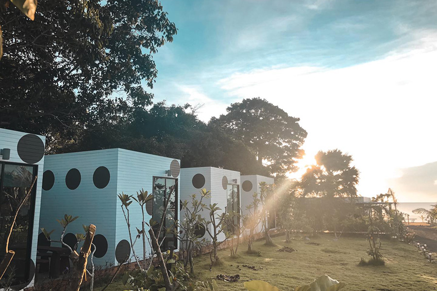 Patdra Glamping ที่พักสไตล์แกลมปิ้งที่สายแคมป์ปิ้งต้องหลงรัก ที่พักที่มาพร้อมบรรยากาศสบายๆ เลือกพักผ่อนได้ถึง 6 สไตล์ เริ่มต้นที่ Tent House บ้านพักสไตล์สามเหลี่ยมเพียบพร้อมด้วยวิวทะเลสวย อีกทั้งยังมี Caravan รถบ้านติดแอร์ที่สายฮิปต้องกดไลค์แถมได้รูปสวยเพียบ ตามมาด้วย Cube House บ้านทรงเต๋าสุดคิวท์เหมาะชวนแก๊งค์เพื่อนไปพักผ่อนชิลล์ๆ ต่อที่ Farm House บ้านฟาร์มห้องพัดลม และสุดท้ายสำหรับคนอยากนอนกางเต็นท์ที่นี่ก็มีลานกางเต็นท์ให้บริการด้วยเช่นกัน