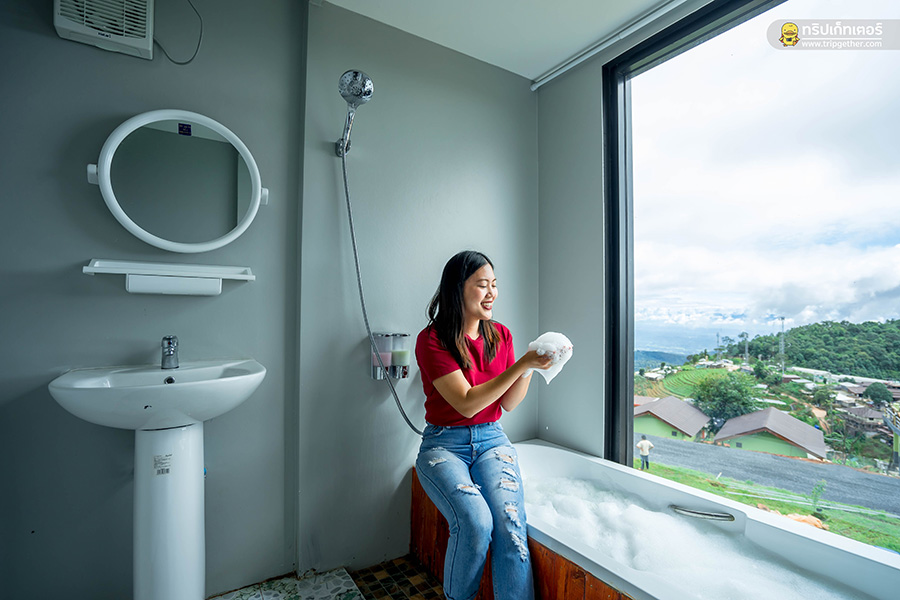 ม่อนตะวัน ที่พักม่อนแจ่มบรรยากาศดี ที่ตั้งอยู่บนเนินเขา ที่ทำให้เพื่อนๆ สามารถพบกับแสงแรกยามเช้าที่สาดแสงผ่านภูเขาได้แบบฟินๆ ด้วยความที่ตัวที่พักตั้งอยู่กึ่งกลางบนเนินเขาทำให้สามารถเห็นวิวธรรมชาติได้อย่างเต็มตาและรับลมหนาวได้อย่างชุ่มฉ่ำหัวใจ สำหรับตัวห้องพักของ ม่อนตะวัน ก็มีให้เลือกทั้งแบบ บ้านลอฟท์ 2 หลัง บ้านคอนเทนเนอร์ 2 หลัง เรือนไม้ไผ่ 3 หลัง และเต็นท์กระโจม 3 หลัง และที่ฟินสุดๆ เลยก็คือ บ้านคอนเทนเนอร์ ที่ภายในตกแต่งอย่างเรียบหรูพร้อมสิ่งอำนวยความสะดวก และอีกหนึ่งไฮไลท์สำหรับบ้านคอนเทนเนอร์ก็คือภายในห้องน้ำมี อ่างจากุซซี่ ริมกระจกใสบานใหญ่ให้นอนแช่น้ำพร้อมชมวิวภูเขาแบบฟินๆ นอกจากนี้ยังมี เต็นท์กระโจม สุดชิค ที่มี เปลตาข่าย ให้นั่งชิลล์ๆ ที่ระเบียงเต็นท์อีกด้วย เอาเป็นว่าเป็นอีกหนึ่งที่พักม่อนแจ่มที่ไม่ควรพลาด