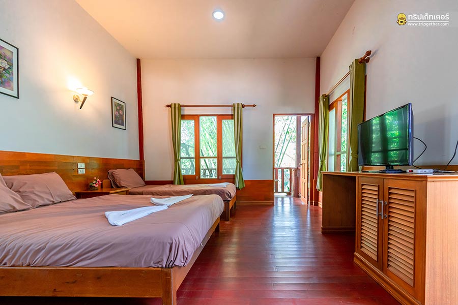 ตาต้าริเวอร์ รีสอร์ท อีกหนึ่งที่พักน่านอนริมน้ำแก่งกระจาน โดดเด่นด้วยกิจกรรมทางน้ำ สระว่ายน้ำกลางแจ้งเลียบริมแม่น้ำ และกิจกรรมสนุกๆ อีกเพียบ!! ส่วนห้องพักของที่นี่ตกแต่งด้วยสีสันสดใส ห้องพักสามารถรองรับได้ตั้งแต่ 2 – 10 คน ภายในห้องสะอาด น่านอน ครบครันด้วยสิ่งอำนวยความสะดวกอย่างดี มีมุมพักผ่อนชิลล์ๆ และถ่ายรูปเก๋ๆ เพียบ!! หรือถ้าใครอยากนั่งรับประทานอาหารริมน้ำชิลล์ๆ ที่นี่ก็มีห้องอาหารบรรยากาศดีริมน้ำให้บริการ หรือหากใครไม่ได้พักที่นี่ก็ยังสามารถเข้ามาเล่นน้ำ ทำกิจกรรม และรับประทานอาหารได้เช่นกัน