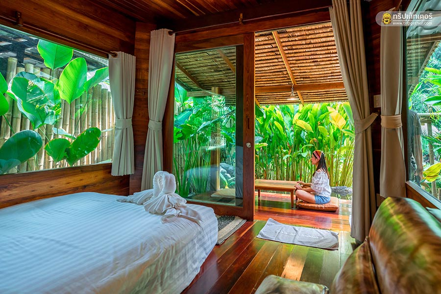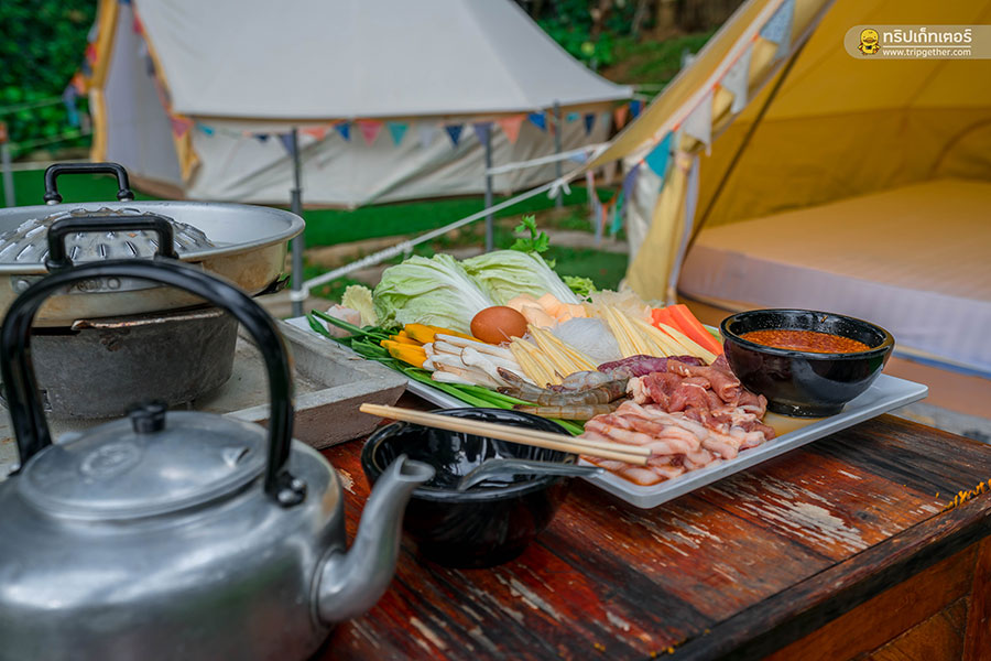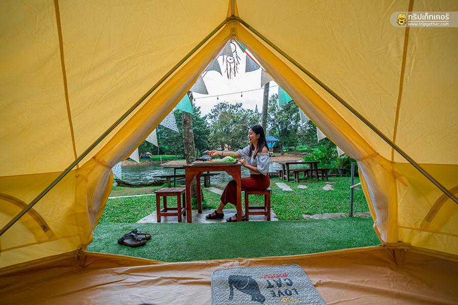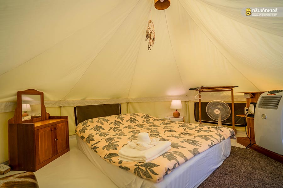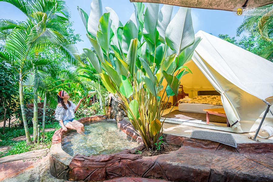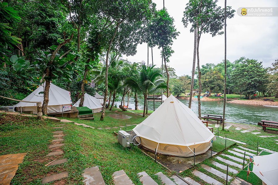 สายธารแห่งรัก รีสอร์ท ที่พักสุดชิลล์พื้นที่แห่งการพักผ่อนที่ให้ฟีลลิ่งสบายๆ ไปกับห้องพักสไตล์แคมป์ปิ้ง ด้วยเต็นท์กระโจมสีขาวที่ตกแต่งในสไตล์โบฮีเมียน ภายในเต็นท์ติดแอร์และครบครันด้วยสิ่งอำนวยความสะดวกอย่างดีทีเดียว แถมยังมีหมูกระทะเสิร์ฟถึงหน้าเต็นท์ให้คุณได้ฟินไปกับของอร่อยท่ามกลางบรรยากาศที่แสนโรแมนติกของที่นี่ นอกจากเต็นท์กระโจมแล้วที่นี่ยังมีบ้านพักสไตล์คันทรีสุดเท่ คาเฟ่และร้านอาหารให้คุณได้สั่งของอร่อยๆ รับประทานกันได้อีกด้วย