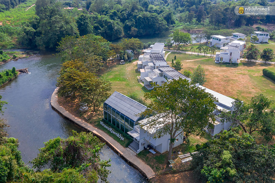 วรวีร์ รีสอร์ท แอนด์สปา ที่พักสไตล์โมเดิร์นสีขาวสุดโดดเด่น ตัดกับภูเขาสีเขียวที่เป็นฉากหลังได้อย่างลงตัว นอกจากดีไซน์บ้านพักที่เก๋ไก๋ไม่เหมือนใครแล้ว ที่นี่ยังมีสระว่ายน้ำเลียบริมน้ำ มุมพักต่างๆ เตียงอาบแดด เปลตาข่ายริมน้ำให้นั่งห้อยขาจุ่มน้ำกันแบบชิลล์ๆ ส่วนห้องพักก็ตกแต่งได้อย่างน่านอน ภายในครบครันด้วยสิ่งอำนวยความสะดวกอย่างดี และยังมีคาเฟ่ริมน้ำดีไซน์น่ารักๆ ให้แวะมานั่งเช็คอินจิบกาแฟ เครื่องดื่มเย็นๆ กันสักแก้ว