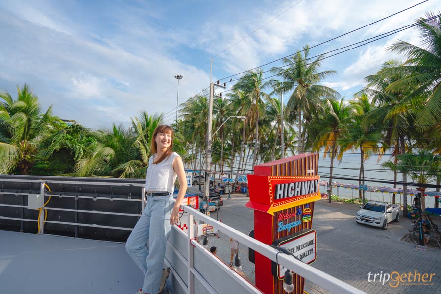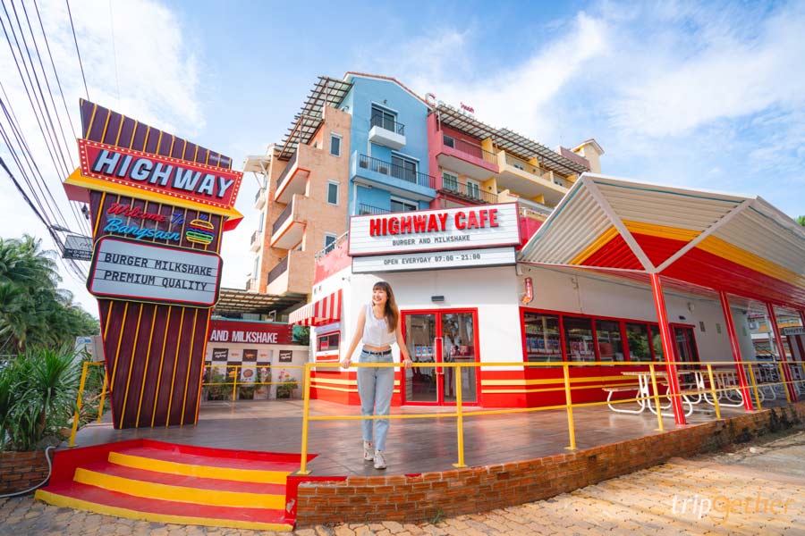 มาต่อกันที่ ไฮเวย์ คาเฟ่ (Highway Cafe) คาเฟ่บางแสน สุดฮิตในโซเชียลมีเดีย ที่มาในไวบ์ของ American Roadside คาเฟ่ แบบต้นตำรับเน้นใช้โทนสีขาวแดงเป็นหลัก ซึ่งตังร้านก็อยู่ที่หาดวอนนภาเลยนะ เรียกได้ว่าเดินทางสะดวกมากๆ ตัวร้านมีด้วยกัน 2 ชั้น ด้านบนช่วงเย็นบรรยากาศดี มีลมเย็นๆ พัดมาตลอด แถมมาพร้อมวิวทะเลสวยๆอีกด้วน กลับลงมาด้านล่างก็จะมีเคาเตอร์สั่งอาหารที่มีให้เลือกทั้งเครื่องดื่ม ไอศกรีม ของกินเล่น และเบอเกอร์ ภายในร้านก็มีมุมถ่ายภาพเก๋ๆ ชิคๆ เพียบเช่นกัน