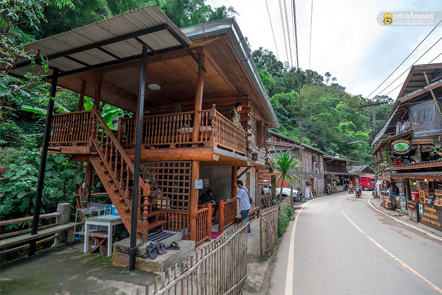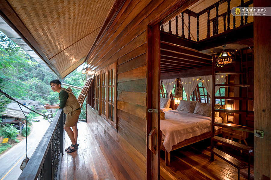 มานอนพักผ่อน ปล่อยหัวใจให้ธรรมชาติได้บำบัดกันกับ บ้านน้อยกลอยใจ ที่พักใจกลางหมู่บ้านแม่กำปอง แถมที่พักแห่งนี้ยังอยู่ใกล้กับจุดถ่ายรูปแลนด์มาร์คของหมู่บ้านอีกด้วย ตัวที่พักด้านนอกจะเป็นบ้านไม้สองชั้นสไตล์ล้านนา มีระเบียงยื่นออกมาให้นั่งชมวิวหมู่บ้านจากตัวห้องพักกันได้ทุกห้อง สำหรับห้องพักของที่นี่จะเน้นความเป็นส่วนตัวของผู้เข้าพักเป็นอย่างมาก เพราะมีเพียง 3 ห้องเท่านั้น แบ่งเป็น ห้องดอกกำปอง (ชั้นล่าง) ห้องดอกเมี่ยง และห้องดอกกาแฟ (ชั้นบน) ได้ฟีลเป็นส่วนตัวสุดๆ แถมยังมีร้านอาหารแม่กำปองชื่อดังอย่างร้าน ข้าวซอยกลอยใจ อยู่ในตัวอีกด้วย
