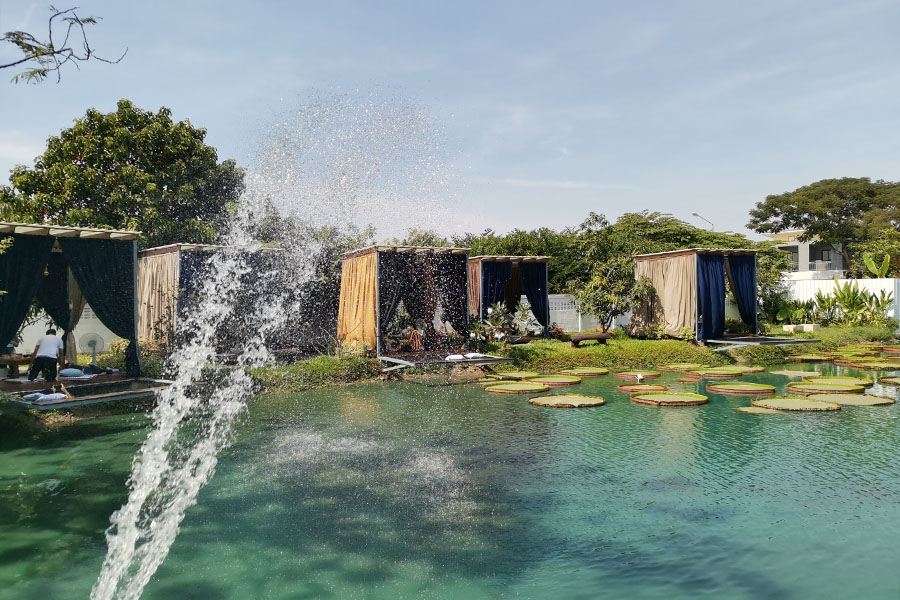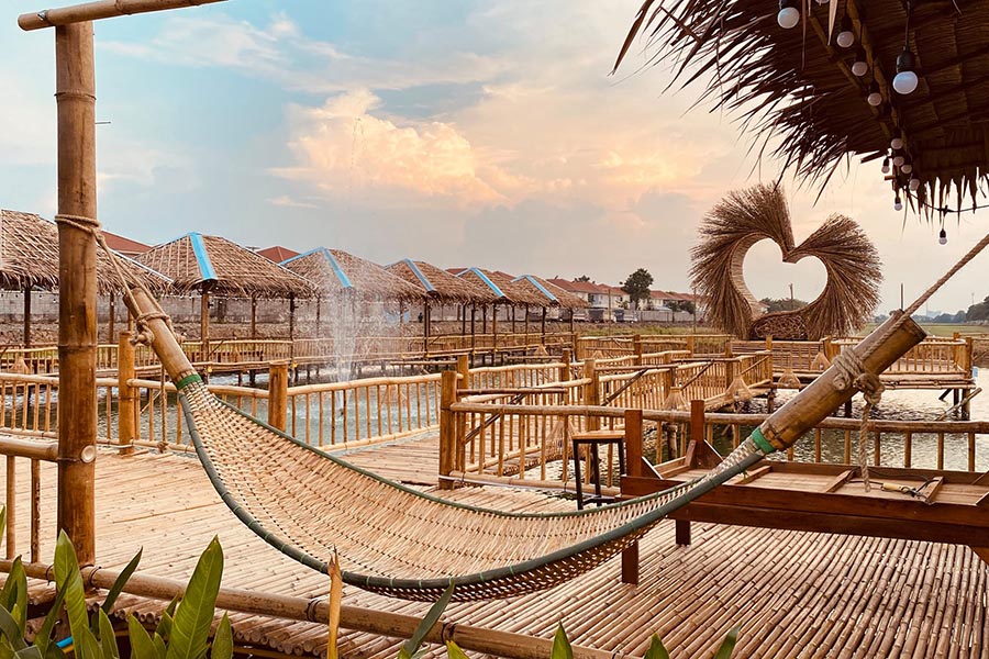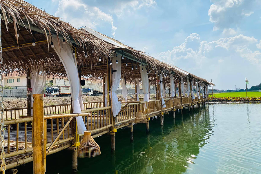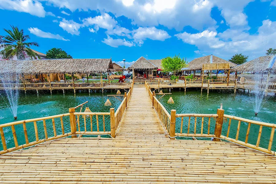 จิ้มจุ่มยักษ์ลำลูกกา ร้านอาหารบรรยากาศดีที่ตกแต่งด้วยสไตล์บาหลี๊บาหลี ตัวร้านถูกออกแบบให้สร้างอยู่บนน้ำโดดเด่นด้วยการใช้วัสดุจากธรรมชาติในการสร้าง ถึงแม้จะขับรถจากกรุงเทพถึงตัวร้านเพียง 45 นาที ก็เหมือนได้มารีทรีตร่างกาย สูดอากาศบริสุทธิ์ โดยเฉพาะช่วงเย็นบรรยากาศของร้านจะดีมาก สำหรับเมนูเด็ดของที่นี่คงหนีไม่พ้นจิ้มจุ่มที่จัดเต็มไปด้วยวัตถุดิบอย่างดีทั้งเนื้อหมูและซีฟู้ด นอกจากนี้ยังมี ยำ ส้มตำ และอาหารสไตล์ไทยๆ ให้เลือกอีกมากมาย เอาเป็นว่าใครที่กำลังมองหาร้านน่านั่งบรรยากาศชิลล์ วิวปังอยู่ ต้องมาที่นี่เลย