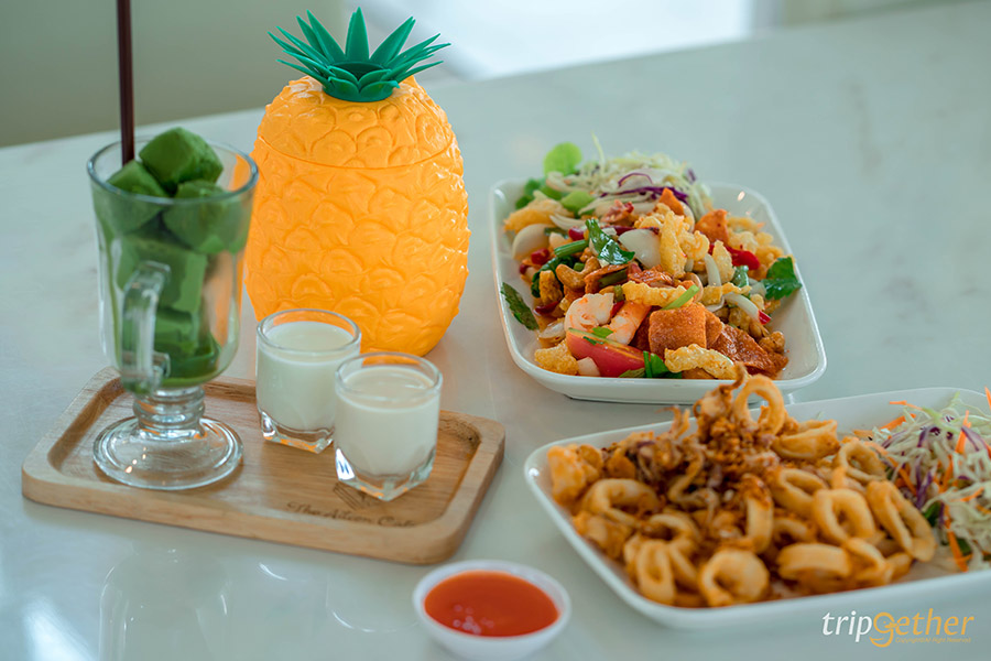 The Aileen Cafe’ Coffee & Restaurant คาเฟ่บรรยากาศสุดชิลล์ที่จำลองชายหาดเล็กๆ มาไว้ริมทุ่งนาและดงตาล ตัวคาเฟ่ตกแต่งด้วยสไตล์โมเดิร์นมินิมอลเน้นใช้โทนสีขาวเพื่อให้ดูสบายตาและเข้ากับบรรยากาศโดยรอบ สำหรับโซนที่นั่งมีให้เลือกด้วยกันถึง 2 โซนคือ โซนห้องแอร์ภายในตัวร้านและโซนเอ้าท์ดอร์วิวทุ่งนา ที่สามารถสั่งเครื่องดื่มมานั่งจิบชิลล์ๆ ชมวิวดงตาลกลางทุ่งนา ถ้าหากใครที่เป็นสายถ่านรูปละก็..รับรองว่าไม่ผิดหวังอย่างแน่นอน เพราะที่นี่มีมุมให้ถ่ายรูปมากมายทั้ง สะพานไม้กลางทุ่งนา รังนกบาหลี ชิงช้า หรือใครจะครีเอทมุมแปลกๆ ใหม่ๆ ก็สามารถทำได้ตามสบาย มาที่นี่นอกจากอาหารและเครื่องดื่มจะอร่อยแล้ว ยังได้รูปสวยๆ เพียบ!