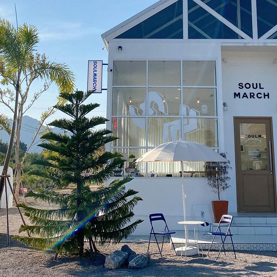 Soul March Cafe คาเฟ่ชะอำเปิดใหม่อีกหนึ่งร้านที่อยากชวนทุกคนไปเช็คอิน ตัวร้านสีขาวสะดุดตาภายในร้านตกแต่งด้วยเฟอร์นิเจอร์สไตล์มินิมอลที่เข้ากันอย่างลงตัว แถมทุกมุมของร้านยังถ่ายรูปออกมาได้อาร์ตสุดๆ เลย นอกจากบรรยากาศของร้านจะดีแล้ว เมนูซิกเนเจอร์ของ Soul March Cafe ก็พลาดไม่ได้เช่นกัน อย่างเมนู Black Tiramisu, Matcha Strawberry Latte และ Moodies ที่รับรองว่าต้องถูกใจแน่นอน วันหยุดทั้งทีขับรถเล่นมาเช็คอินที่ Soul March Cafe กันเถอะ