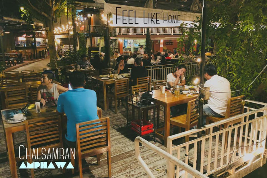 ร้านชาวเล ริมคลองผีหลอก อัมพวา ร้านอาหารบรรยากาศดีริมน้ำแม่กลอง ตกแต่งอย่างเรียบง่ายสไตล์วินเทจผสมผสานกับสไตล์ American Country เข้ากันกับบรรยากาศริมน้ำแบบสุดๆ ทางร้านมีโซนให้เลือกนั่งทั้งโซนอินดอร์และเอาท์ดอร์ จะเลือกนั่งโซนไหนก็สัมผัสได้ถึงความชิลล์และวิวของริมน้ำแบบฟินๆ ส่วนเมนูของที่นี่ขอแนะนำเลยคือ ปลาทูต้มมะดัน ปลาหมึกผัดกะปิ หอยหลอดผัดฉ่า กุ้งแม่น้ำเผา ปลากะพงทอดสมุนไพร ปลาทูซาเตี๊ยะ ปูไข่ผัดน้ำพริกเผา กุ้งแชบ๊วยผัดซอสมะขาม กินกับข้าวสวยร้อนๆ ฟินกว่านี้ไม่มีอีกแล้ว อาหารน่ากินขนาดนี้เตรียมหยิบกุญแจรถแล้วไปกันเลย