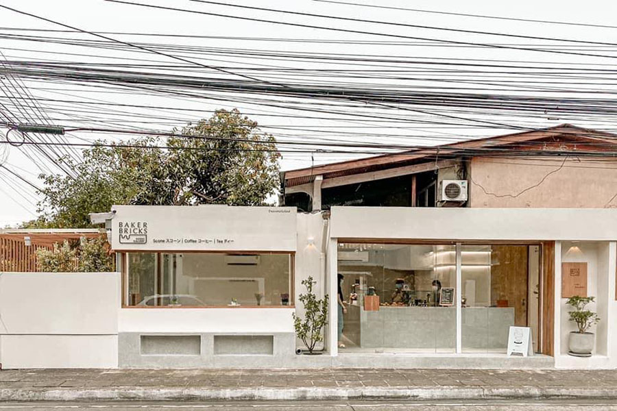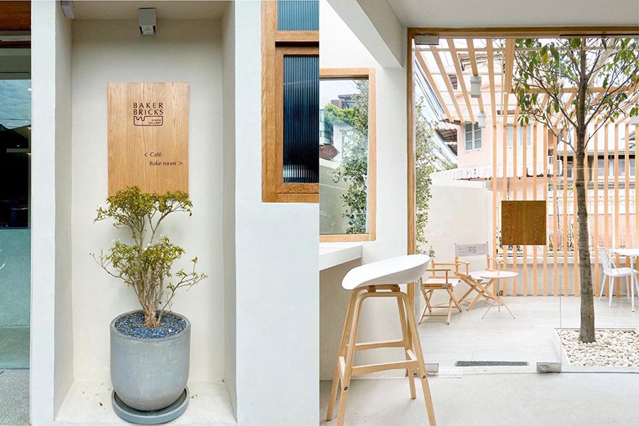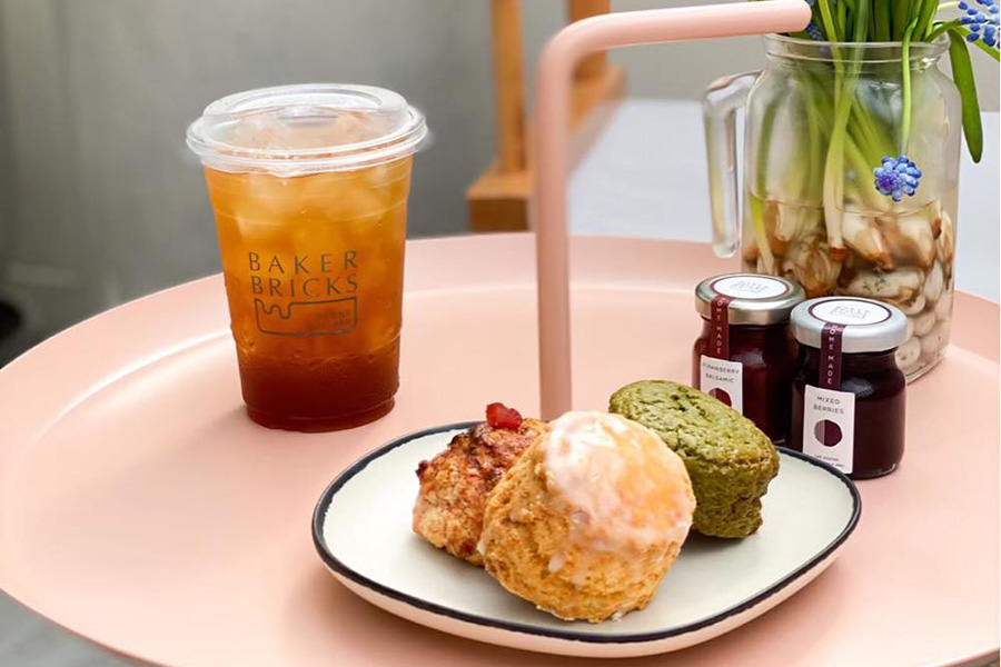 Baker Bricks Rama 9 คาเฟ่สีขาวสไตล์มินิมอลแห่งนี้ตั้งอยู่ในย่านพระราม 9 ซึ่งถือเป็นสาขาที่ 2 โดยสาขาแรกอยู่สุขุมวิท 39 สาขาใหม่แห่งนี้มาในลุคเรียบๆ ทรงสี่เหลี่ยม ตกแต่งด้วยเฟอร์นิเจอร์สีขาว ผนังปูนสีเทาและกระจก ทำให้บรรยากาศภายในร้านดูโล่งสบายไม่อึดอัด ทั้งที่ร้านไม่ได้กว้างมาก ถือเป็นการจัดสรรพื้นที่และการใช้วัสดุและโทนสีได้ดี ส่วนเมนูแนะนำของที่นี่จะเป็นขนมอบ ที่มีชื่อเรียกว่า สโคน โดยมีรสชาติหลากหลายทั้ง มัทฉะ, เลม่อน, แมคคาเดเมีย, ดับเบิ้ลช็อค, ท็อฟฟี่แครนเบอร์รี่, เพิร์ล ชูการ์, มิลค์กี้เอิร์ลเกรย์ และครั้นชี่บานาน่า ได้รองแล้วจะติดใจ เป็นขนมที่มีความละมุนและอร่อยมากๆ แนะนำเลย!