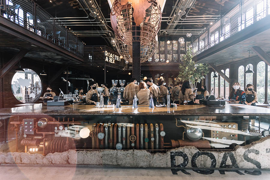 NANA Hunter Coffee Roasters คาเฟ่ที่ปฏิเสธไม่ได้เลยว่ากำลังดังและเป็นกระแสมากในตอนนี้ ซึ่งถูกใจชาวคอฟฟี่เลิฟเวอร์มากๆ ตัวร้านออกแบบเป็นโรงคั่วกาแฟ สไตล์ลอฟ์ทผสมผสานความอินดัสเทรียล เน้นโชว์ผิววัสดุ ภายในโดดเด่นด้วยลูกโลก 3 ลูก โดยลูกโลกที้ง 3 นี้ สื่อถึงกาแฟในโลกใบเก่า/ปัจจุบัน/อนาคต ซึ่งเป็นความหมายที่ดีมากๆ ในส่วนของกาแฟ ที่นี้ใช้เมล็ดกาแฟถึง 37 สายพันธ์ สมกับดีกรีแชมป์โลก โดยเมนูแนะนำที่มาแล้วไม่ควรพลาดคือ Signature Kanda, Yuzu Sparkling, Wake Up, Nitro Tea, World Syphon Blend และ Dirty ชอบรสชาติกันแบบไหน ลองมาชิมกันดูนะครับ