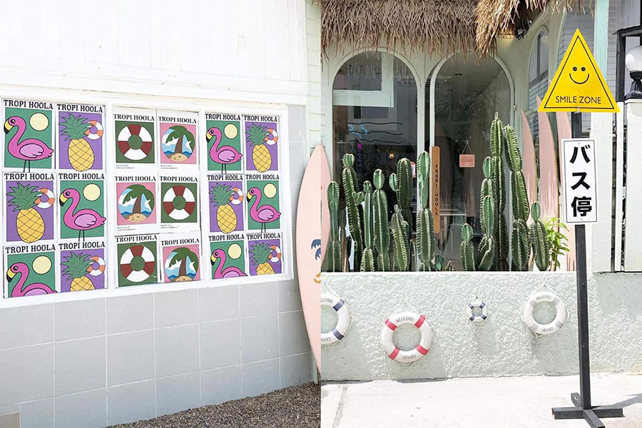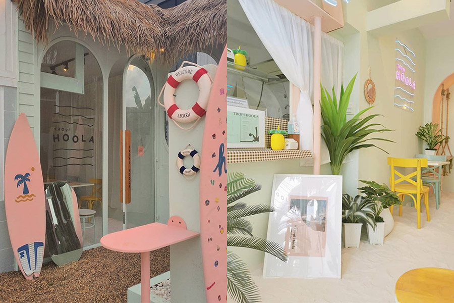 Tropi Hoola คาเฟ่สุดน่ารักที่ย้ายมาจากโครงการ Gump ซึ่งตอนนี้ได้ปรับโฉมมาในแนวญี่ปุ่นแต่ยังคงความชิค และน่ารักเหมือนเดิมในสไตล์ทรอปิคอล-พาสเทล ฟีลซัมเมอร์ ที่มีห่วงยางและกระดานเซิร์ฟ มุมถ่ายรูปก็มีเยอะขึ้นทั้งภายนอกและภายใน รวมถึงที่จอดรถก็ใหญ่ขึ้น ซึ่งร้านโฉมใหม่นี้มีค่าเข้า 50 บาท แต่สามารถนำไปเป็นส่วนลดในการซื้อเครื่องดื่มและขนมภายในร้านได้ ด้านขนมและเครื่องดื่มยังมีสีสันสดใสและเสิร์ฟมาอย่างน่ารักเหมือนเดิม ยังคงเป็นคาเฟ่ที่ดีต่อใจเหมือนเดิม เพิ่มเติมคือถ่ายรูปแล้วสวยปังกว่าที่ผ่านมา