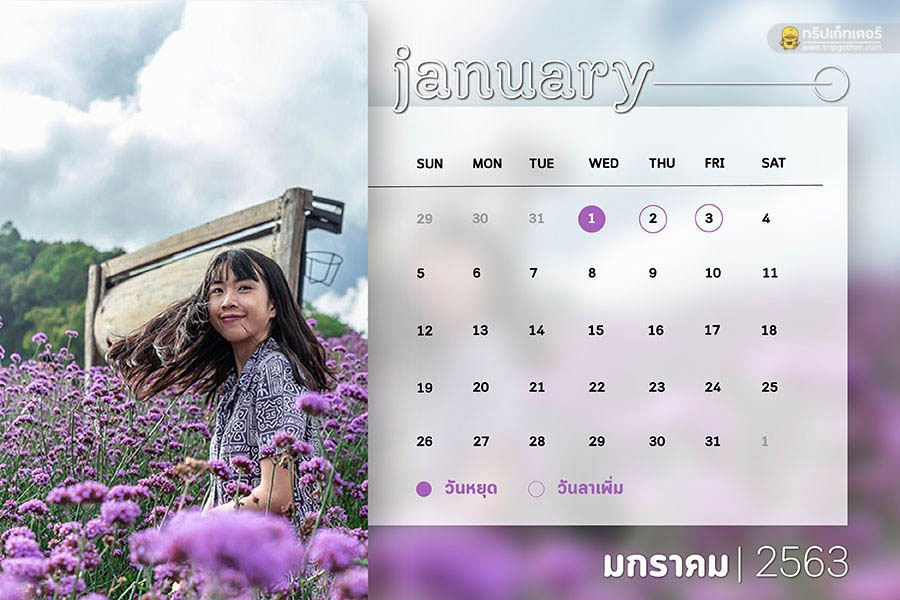 ปีใหม่ใกล้เข้ามาทุกทีแล้วจ้า สำหรับมนุษย์เงินเดือนคนไหนที่อยากเที่ยวแต่ยังไม่รู้จะไปเที่ยวไหนดี วันนี้ทริปเก็ทเตอร์จึงเอาแพลนเที่ยววันหยุดยาวในปี 2563 มาฝาก ให้มนุษย์เงินเดือนทั้งหลายได้เตรียมตัวเตรียมใจให้พร้อมในการออกเดินทางไปเสาะหาประสบการณ์ใหม่ๆ ไปเจอะเจอผู้คนใช้ชีวิตสังสรรค์พักผ่อนก่อนจะกลับมาลุยงานกันต่อ เรียกได้ว่าถ้าวางแผนลางานดีๆ ละก็ได้ชาร์จแบตพักผ่อนเต็มที่อย่างแน่นอน ตามมาดูกันเลยว่าชาวทริปเก็ทเตอร์ควรจะลาช่วงไหน และแต่ละเดือนมีสถานที่ไหนน่าไปท่องเที่ยวกันบ้าง ลุยโลด..
