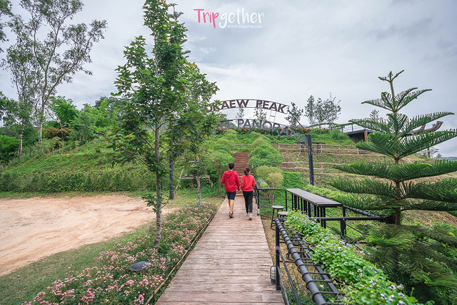 “ภูแก้วพีค คาเฟ่” คาเฟ่พร้อมจุดชมวิวบนภูเขาสูงที่กว่าจะขึ้นไปถึงด้านบนได้ก็เล่นเอาหอบอยู่เหมือนกัน แต่ขอบอกเลยว่าเมื่อเดินขึ้นไปถึงแล้วหายเหนื่อยเป็นปลิดทิ้ง และร้องว๊าวออกมาได้อย่างเต็มปากแน่นอน เพราะวิวด้านบนสวยมาก อลังการ เงียบสงบ สมกับเป็นพื้นที่จุดชมวิวบนภูเขาจริงๆ ไปตอนเช้าๆ อากาศดีได้รับโอโซนดีดี หรือจะได้ตอนเย็นๆ รอชมพระอาทิตย์ตกก็ได้ความรู้สึกสวยๆ ไปอีกแบบ พร้อมดื่มด่ำไปกับบรรยากาศธรรมชาติสวยงาม มุมถ่ายรูปเพียบ ไม่ว่าจะเป็นอุ้งมือยักษ์ให้คุณขึ้นไปยืนมองวิวไปแบบ 360 องศา แถมได้รูปแบล็คกราววิวเขาค้ออีกด้วย สำหรับใครกลัวจะเหนื่อยทางรีสอร์ทก็มีรถรับ-ส่งคอยบริการด้วยเหมือนกัน