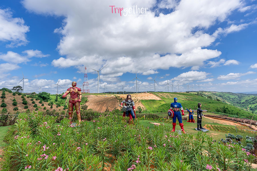 มาเที่ยวทุ่งกังหันลมแล้วต้องแวะมาถ่ายรูปตรงจุดชมวิวคิงคอง เขาค้อ สถานที่ที่เป็นทั้งคาเฟ่ ลานกางเต็นท์ และจุดชมวิว ที่นี่เค้ามีมุมถ่ายรูปสวยๆ มากมาย ทั้งคิงคองยักษ์ ไดโนเสาร์ ช้างแมมมอส สวนดอกไม้สวยๆ แล้วยังเสริมทัพมาด้วยเหล่าฮีโร่อเวนเจอร์ มีสะพานไม้ไผ่ และชิงช้าให้เล่นด้วย วิวที่นี่ก็สวยไม่แพ้ที่อื่นๆ เลย สามารถมองเห็นอ.เขาค้อได้แบบ 360 องศา มองไปทางขวาก็จะเห็นวิวทุ่งกังหันลมเขาค้อสวยงามมาก สำหรับใครที่จะมาเที่ยวเดินเล่น ชมวิวธรรมชาติ หรือมาถ่ายรูปต้องเตรียมเงินค่าเข้าด้วยนะจ๊ะ คนละ 40 บาทเท่านั้นจ้า