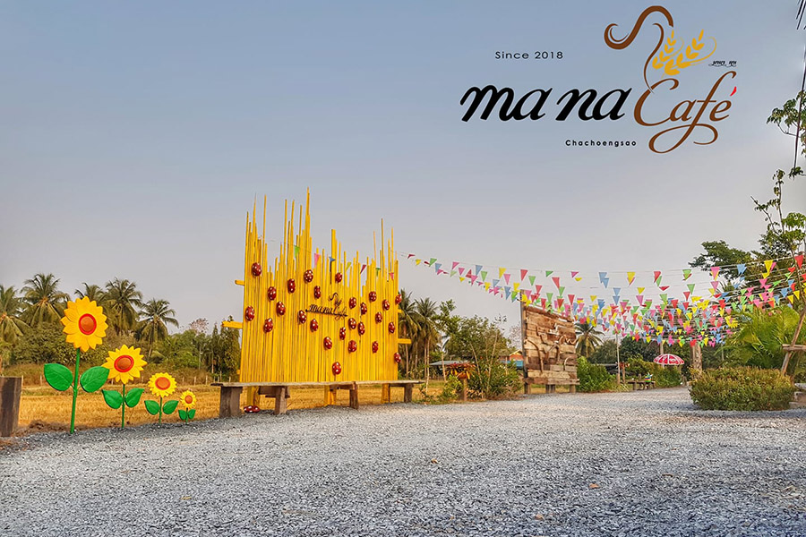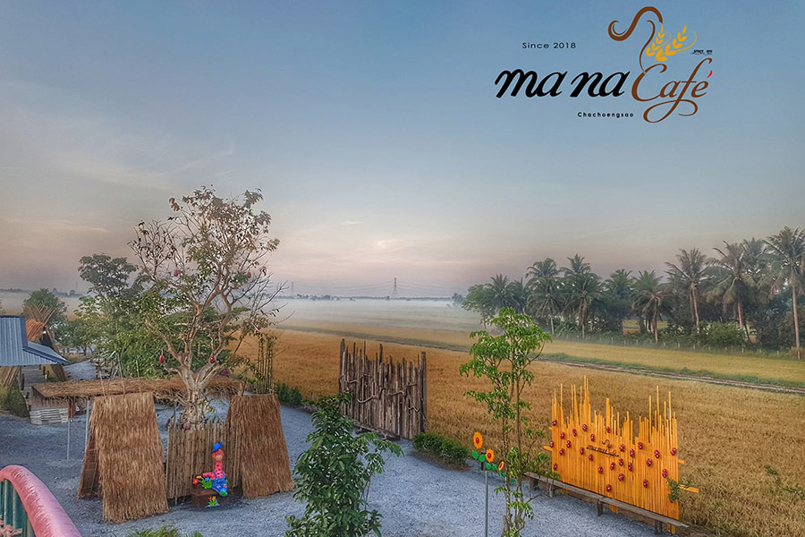 คาเฟ่ที่อยู่ไม่ไกลจากกรุงเทพ เดินทางสะดวก แถมโอบล้อมด้วยท้องทุ่งนาเขียวชอุ่ม เป็นอีกหนึ่งจุดเช็คอินฟินๆ ในบรรยากาศสบายๆ มีมุมให้เดินเล่นถ่ายรูปได้ทั่วทั้งบริเวณร้าน อย่างสะพานโค้งข้ามสระน้ำ และสะพานไม้กลางทุ่งนา ในส่วนของเมนูอาหารมีทั้งคาวหวาน อย่าง ก๋วยเตี๋ยวเนื้อตุ๋น, ไก่จ๊อ, นักเก็ตไก่, ยำปากแตก เป็นยำสูตรเฉพาะของทางร้าน, เค้กโฮมเมด, เค้กกาแฟแมคคาเดเมีย, เค้กใบเตยมะพร้าวอ่อน, สตรอเบอร์รี่ชีสเค้ก, อิตาเลียนโซดา และอีกหลากหลายเมนูที่อยากให้แวะเข้าไปลองชิมกันที่ Ma Na Cafe’ จ.ฉะเชิงเทรา