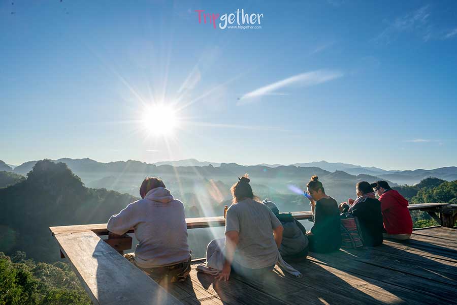 ตะลุยกันต่อที่ ยอดดอยภูผาหมอก ดอยแห่งนี้จะอยู่บริเวณก่อนถึงหมู่บ้านเล็กน้อย เป็นภูเขาและป่าที่เราจะต้องเดินขึ้นตามเส้นทาง ที่มีไกด์คอยนำ ซึ่งเป็นจุดชมวิวทะเลหมอกที่ในทุกๆ เช้า เส้นทางค่อนข้างชันพอสมควร มีระยะทางประมาณ 500 แต่ก็ไม่อยากจนเกินไปเด็กเล็กก็สามารถขึ้นได้แบบสบายๆ ด้านบนเป็นโขดหินให้นั่งพัก จากมุมนี้เราจะได้เห็นวิวแบบ 360 องศา ทะเลหมอกและแสงแรกยามเช้าได้ก่อนใคร