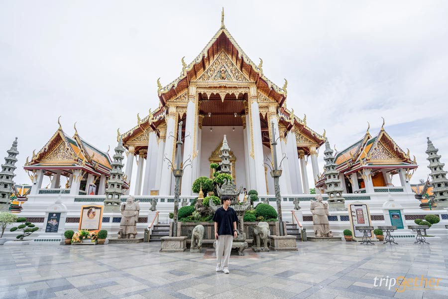 ใครชีวิตติดขัด ทำอะไรก็ไม่ราบรื่น แนะนำให้มาที่ วัดสุทัศนเทพวราราม ไปทำพิธี ถอนคำสาบาน ขอขมากรรม อธิษฐานจิตต่อองค์พระพุทธเสรฏฐมุนี พระพุทธรูปปางมารวิชัยที่หล่อจากกลักฝิ่น สร้างขึ้นในสมัยพระบาทสมเด็จพระนั่งเกล้าเจ้าอยู่หัว รัชกาลที่ 3 เพื่อให้ดวงสว่างจากร้ายค่อยๆ กลายเป็นดี นอกจากนี้ภายในวัดยังงดงามไปด้วยสถาปัตยกรรมที่มีประวัติศาสตร์ซ่อนอยู่ในทุกมุม รวมทั้งมีสิ่งศักดิ์สิทธิ์ให้กราบสักการะขอพร แนะนำว่าเมื่อเข้ามาทางด้านหน้าให้สักการะ พระพุทธตรีโลกเชษฐ์ พระประธานในพระอุโบสถก่อน แล้วออกทางประตูหลังเพื่อไปสักการะขอพรท้าวเวสสุวรรณเป็นลำดับต่อไป เรียกได้ว่าอิ่มบุญอิ่มใจ มีกำลังใจทำงานสุดๆ