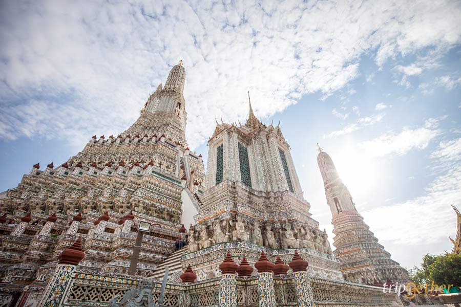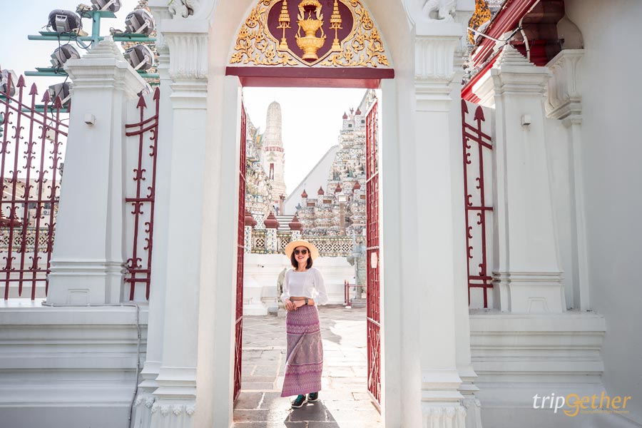 ทริป ไหว้พระทำบุญ 9 วัด รอบกรุงเทพฯ กันที่ วัดอรุณราชวราราม เป็นวัดที่สวยงามโดดเด่นด้วยพระปรางค์องค์ใหญ่ที่ถูกประดับด้วยกระเบื้องเคลือบสีและถ้วยชามเบญจรงค์ ตั้งตระหง่านเคียงคู่แม่น้ำเจ้าพระยา สำหรับจุดไฮไลท์ที่คนนิยมมากราบไหว้คือองค์พระปรางค์ และมาโบสถ์น้อยเพื่อลอดใต้พระแท่นบรรทมของพระเจ้าตากสิน โดยสายมูเชื่อกันว่าการจะช่วยล้างเคราะห์ ล้างอาถรรพ์ และเสริมบารมี ถือว่าเป็นความงดงามอันทรงคุณค่าที่ต้องมาสักครั้ง