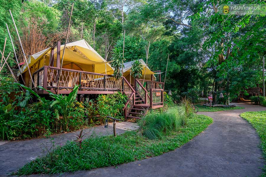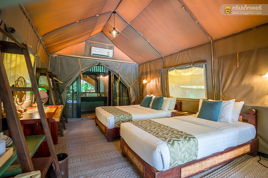หินตก ริเวอร์ แคมป์ ณ ช่องเขาขาด ที่พักกลางป่าสไตล์ซาฟารีแคมป์ ที่จะเปลี่ยนการพักผ่อนแบบเดิมๆ ให้สนุกเพลิดเพลินไปกับห้องพัก และกิจกรรมต่างๆ ยิ่งถ้ามาในช่วงปลายฝนต้นหนาว อากาศจะดีมาก เย็นสบายตลอดทั้งวัน ห้องพักที่นี้เป็นเต็นท์ขนาดกลางมีห้องน้ำในตัว พื้นที่ภายในเต็นท์ข้างกว้าง อีกทั้งยังมีสิ่งอำนวยความสะดวกพร้อม เหมือนอยู่โรงแรมระดับ 5 ดาว ด้านนอกบรรยากาศร่มรื่น มีจุดนั่งพักผ่อนทั่วรีสอร์ท ใครอยากเล่นน้ำ พายเรือ ก็สามารถเดินลงไปที่โซนแพได้เลย หรือจะนอนแช่น้ำเก๋ๆ ในสระธรรมชาติก็ฟินไปอีกแบบ สำหรับคนที่ไม่ชอบเล่นน้ำ ก็สามารถใช้บริการนวดแผนไทยและสปาได้ อยากลุยหน่อยก็ปั่นจักรยาน บอกเลยมาพักที่นี่ไม่มีเบื่อ แถมนอนสบายแบบไม่ซ้ำใครแน่นอน