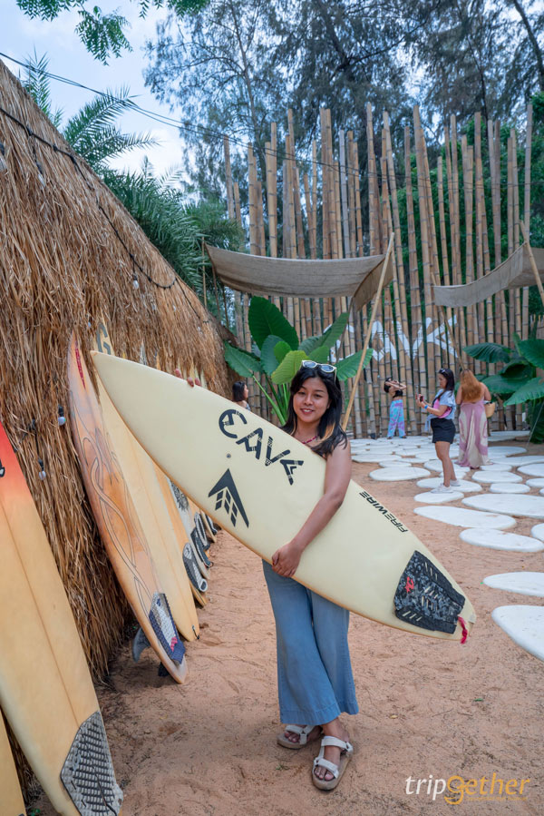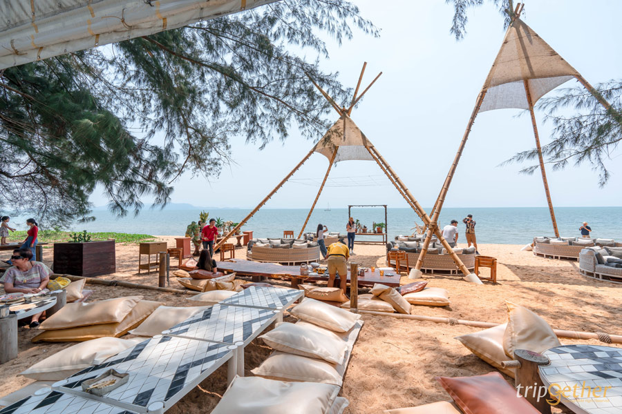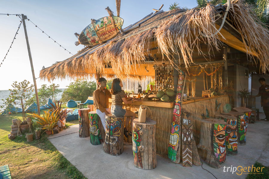 Tutu Beach คาเฟ่สไตล์ทรอปิคอลอีกหนึ่งที่ โดดเด่นด้วยการตกแต่งเล่นสีที่ตัดกันอย่างสีเขียวและสีชมพู มีโซนที่นั่งให้เลือกจำนวนมากทั้งภายนอกและภายใน ถ้าใครอยากรับลมทะเลแบบชิลล์ๆ ก็แนะนำที่นั่งริมชายหาดเลย เป็นที่นั่งบีนแบ็กสีชมพูสดใส สามารถเอนตัวนอนได้สบาย แถมไม่ต้องกลัวร้อน เพราะมีร่มให้ประจำทุกโต๊ะ ในส่วนของเมนูจะเน้นเป็นอาหารจานเดียว ไฮไลท์ของที่นี่อยู่ตรงเครื่องดื่ม ที่จะเสิร์ฟมาในแก้วรูปเปลือกหอย ถ่ายรูปลงไอจีได้แบบปังๆ