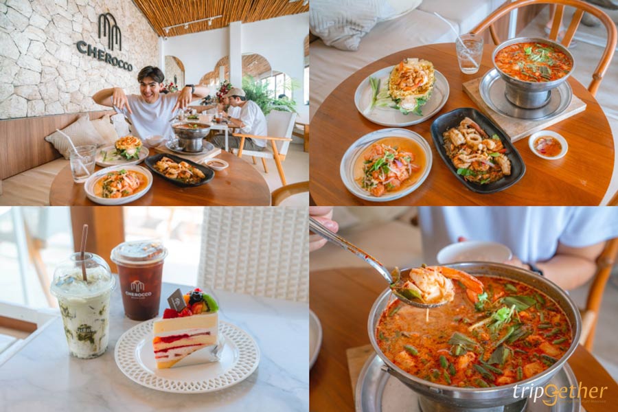 มาส่งท้าย คาเฟ่ถ่ายรูปสวย ใกล้กรุงเทพ กันที่ เฌอร็อคโค่ บีช คลับ (Cherocco Beach Club) จุดเช็คอินสุดมินิมอล คาเฟ่สีขาวและร้านอาหารสุดชิลล์ ที่สำคัญคือเดินไม่กี่ก้าวก็ถึงทะเล! บอกเลยว่าเป็นคาเฟ่ที่ตอบโจทย์ที่เพศทุกวัยไม่ว่าจะเป็นวัยรุ่นสายคอนเทนต์ไปจนถึงครอบครัวเลย เฌอร็อคโค่ บีช คลับ มีที่นั่งให้เลือกทั้งโซน Indoor และ Outdoor มีอาหารหลากหลายเมนูทั้งอาหารทะเลสดๆ เครื่องดื่ม ขนมหวาน สายชิลล์แนะนำให้มาช่วงเย็นๆ เลยเพราะที่นี่เค้ามีดนตรีสดริมทะเลให้ฟังพร้อมชมพระอาทิตย์ตก พิกัดนี้ใจฟูแน่นอน