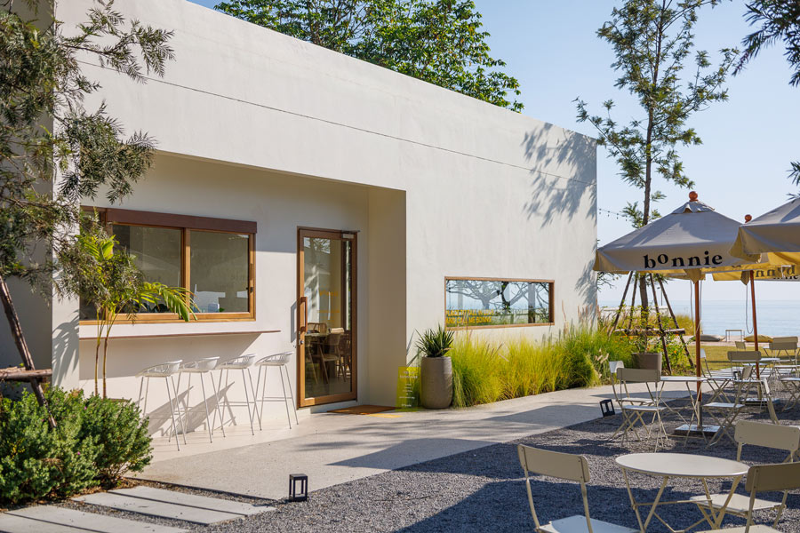 บอนนี่ ออน เดอะ บีช(bOnnie on the beach) คาเฟ่น่ารักๆ บรรยากาศอบอุ่นริมทะเลชะอำ ที่มาพร้อมกับตัวร้านที่คุมโทนและการตกแต่งแบบเรียบง่าย แต่เต็มไปด้วยความเบาสบาย มีโซนที่นั่งทั้งแบบอินดอร์ที่มีกระจกใสบานใหญ่ที่สามารถมองเห็นวิวทะเลได้แบบเต็มๆ และโซนเอาท์ดอร์ด้านนอกที่บรรยากาศดีไม่แพ้กัน นอกจากนี้ในโซนด้านนอกยังมีสนามหญ้าเล็กๆ และพุ่มดอกหญ้าน่ารักๆ ให้ได้ใช้เป็นมุมถ่ายรูปเก๋ๆ อีกด้วย ใครที่มาชะอำ บอกเลยว่าต้องแวะมาเช็คอินที่นี่ให้ได้นะ รับรองว่าจะต้องตกหลุมรักอย่างแน่นอน