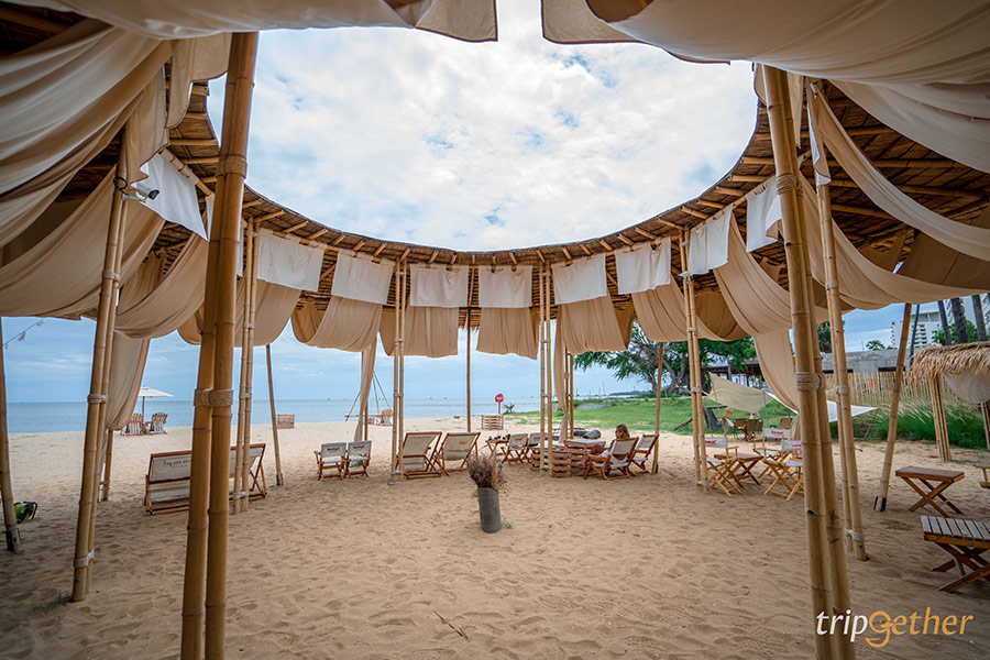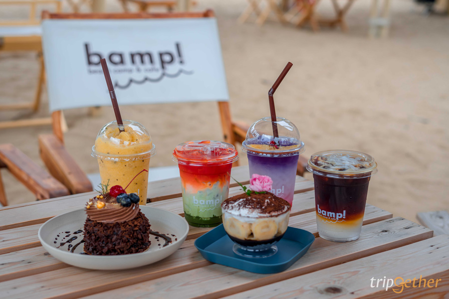 แบม: บีชแคมป์ แอนด์ คาเฟ่ (BAMP : Beach camp & Cafe) คาเฟ่ริมทะเลสุดเก๋ไม่ซ้ำใคร ด้วยสไตล์การตกแต่งแบบ beach camp ที่เน้นใช้วัสดุจากธรรมชาติ โซนที่นั่งเป็นแบบโอเพ่นแอร์ทั้งหมด ตอบโจทย์คนที่อยากมาพักผ่อนชิลล์ๆ ริมทะเลเป็นที่สุด นอกจากนี้บริเวณรอบๆ ของตัวร้านยังมีมุมถ่ายรูปสวยๆ ให้เดินเล่นเพียบ ไม่ว่าจะเป็นทุ่งดอกหญ้าที่ทางเข้าร้าน มุมภายในตัวร้านสวยๆ หรือจะเป็นพื้นที่ริมชายหาดที่มีวิวทะเลสีฟ้าครามเป็นฉากหลัง บอกเลยว่าใครที่กำลังมองหาคาเฟ่สงบๆ ริมทะเล แถมยังถ่ายรูปสวย ขอแนะนำให้มาที่นี่เลย