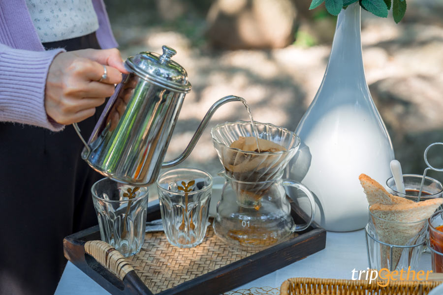 มาต่อกันที่ เดอะธารทองกรีนคอฟฟี่ (The tharntong green coffee) คาเฟ่ติดริมลำธารที่อยู่ท่ามกลางธรรมชาติ ตั้งอยู่ในบริเวณของที่พัก แม่กำปองฮิลล์ (Mae Kampong Hill) บอกเลยว่าได้ฟีลธรรมชาติแบบสุดๆ มาพร้อมเมนูเครื่องดื่มและของหวานเบเกอรี่มากมาย ก่อนกลับอย่าลืมแวะมาแชะภาพที่มุมถ่ายรูปไฮไลท์ อย่าง สะพานไม้ที่ทำเชื่อมจากที่พักมายังคาเฟ่ เป็นมุมถ่ายรูปแสงสวย ใกล้ชิดธรรมชาติแบบฉ่ำๆ