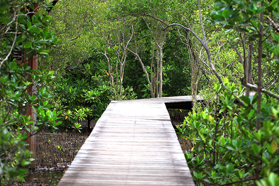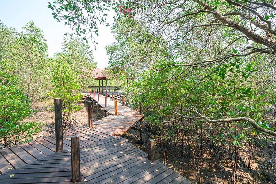 จากจุดชมวิวนางพญาไม่ไกล ก็มีอีกหนึ่งที่เที่ยวกรีนๆ ที่ไม่ควรพลาดแวะมาพักผ่อน ศูนย์ศึกษาการพัฒนาอ่าวคุ้งกระเบน ที่นี่ก่อตั้งตามพระราชดำริของในหลวง รัชกาลที่ 9 เพื่อเป็นแหล่งเรียนรู้ให้ประชาชนท่องเที่ยวศึกษาธรรมชาติ โดยที่นี่จะมีเส้นทางเดินให้ศึกษาพื้นพันธุ์ต่างเป็นระยะทาง 1.6 กิโลเมตร และมีจุให้ความรู้เป็นศาลาทั้งหมด 10 จุด ที่สำคัญช่วงปลายสะพานยังมีศาลาริมน้ำ ที่ถ้าหากว่าโชคดีเราจะได้เห็นพะยูนแหวกว่ายหาอาหารกันด้วย อันชีนสุดๆ