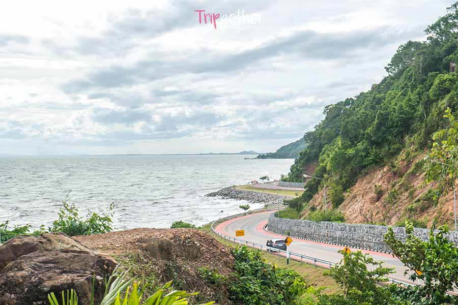 เร่ิมต้นกันที่ จุดชมวิวเนินนางพญา ที่นี่นับว่าเป็นจุดชมวิวที่สวยที่สุดในภาคตะวันออกเลย จากจุดนี้เราจะเห็นถนนทางโค้งเลียบชายทะเล ซึ่งถนนตรงจุดนี้จะทาด้วยสีแดงตัดกับน้ำทะเลสีฟ้าดูงดงามสุดๆ ด้านบนบรรยากาศเย็นสบาย มีลมพัดพากลิ่นไอทะเลมากระทบหน้าเราทั้งวัน ที่สำคัญยังมีมุมให้เลือกถ่ายรูปเยอะ แนะนำให้มาช่วงเย็นบรรยากาศจะไม่ค่อยร้อน ไฟถนนสวย แถมยังมีพระอาทิตย์ตกให้ชมกันด้วย