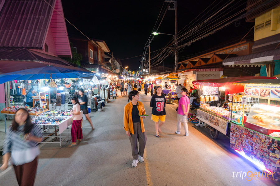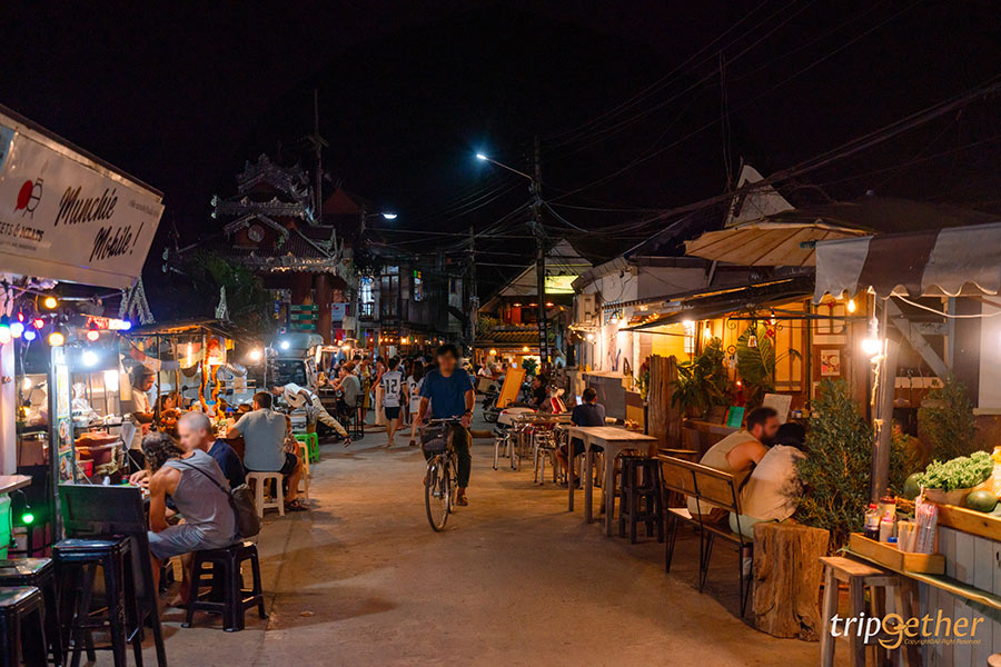 ถนนคนเดินปาย เพลิดเพลินกับของกินหลากหลายและสินค้าพื้นเมืองน่ารักๆ ร้านค้าของที่นี่มีเยอะมาก ถนนก็เดินได้ยาวๆ ของกินมีทั้งกินเล่น กินจริงจัง ขนมหวาน ปิ้งย่าง เครื่องดื่ม บอกเลยว่าสายตะลุยกินต้องถูกใจแน่ๆ ที่สำคัญราคาเป็นมิตรกับกระเป๋าตังค์สุดๆ ส่วนบรรยากาศก็เรียกได้ว่าคึกคักมาก ยิ่งดึกคนยิ่งเยอะ โดยเฉพาะนักท่องเที่ยวต่างชาติเดินกันเต็มไปหมด สำหรับร้านค้าส่วนใหญ่จะเริ่มตั้งร้านกันประมาณ 17.00 น. แต่ถ้าอยากเดินเอาฟีล ร้านเปิดเยอะๆ ให้มาตั้งแต่ 19.00 น. เป็นต้นไป