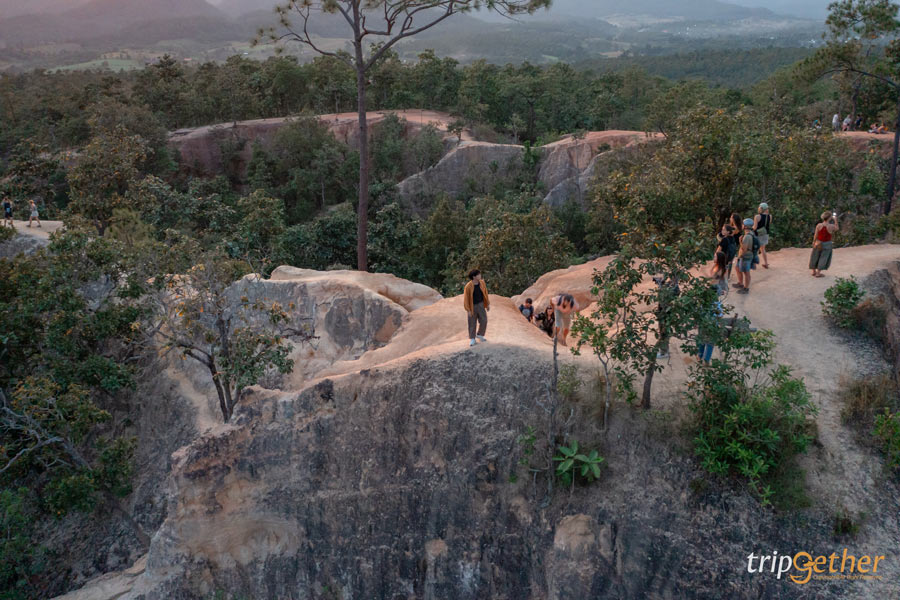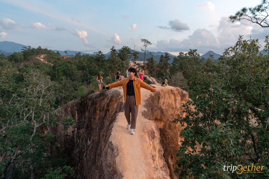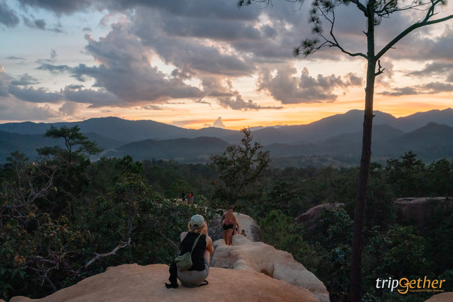 เริ่มต้นด้วยจุดอันซีนสุดว้าวอย่าง กองแลนหรือปายแคนยอน เป็นความสวยงามของแนวเขาที่ถูกกัดเซาะจากลมและฝนจนกลายเป็นร่องทางเดินกลางธรรมชาติ ด้วยลักษณะที่โดดเด่นแปลกตาแบบนี้ จึงดึงดูดนักท่องเที่ยวจากทั่วทุกที่มารวมตัวกันที่นี่ โดยเฉพาะนักท่องเที่ยวต่างชาติที่มักจะมาท้าทายความสูง ความเสียวของทางเดินที่กองแลน ใครที่มาแนะนำให้ใส่ร่องเท้าผ้าใบและชุดที่สบายตัว เพราะทางเดินหลายจุดจะต้องมีกาารปีนป่าย รวมถึงกระโดดข้ามหิน นอกจากจะได้สัมผัสความตื่นเต้นแล้ว อีกไฮไลท์ก็คือการมาดูพระอาทิตย์ตกดิน บอกเลยว่าเป็นจุดเช็คอินปายที่สายแอดเวนเจอร์จะต้องหลงรัก
