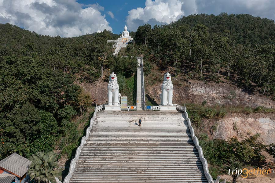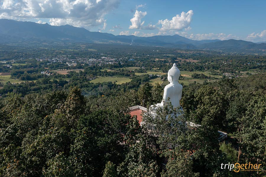 วัดพระธาตุแม่เย็น วัดดังปายที่อยู่ท่ามกลางธรรมชาติ โดดเด่นด้วยพระพุทธรูปสีขาวองค์โตหรือพระพุทธโลกุตระมหามุนี ที่ประดิษฐานอยู่บนยอดเขา ใครที่จะมากราบไหว้ก็ต้องอาศัยจิตศรัทธาอันแรงกล้า เดินขึ้นบันไดพญานาคกว่า 300 ขึ้น บอกเลยว่ากว่าจะถึงข้างบนก็เหนื่อยหอบกันทีเดียว แต่เมื่อมาถึงแล้วก็คุ้มค่ามากๆ นอกจากจะได้กราบขอพร ยังได้เห็นวิวทิวทัศน์แบบเต็มๆ