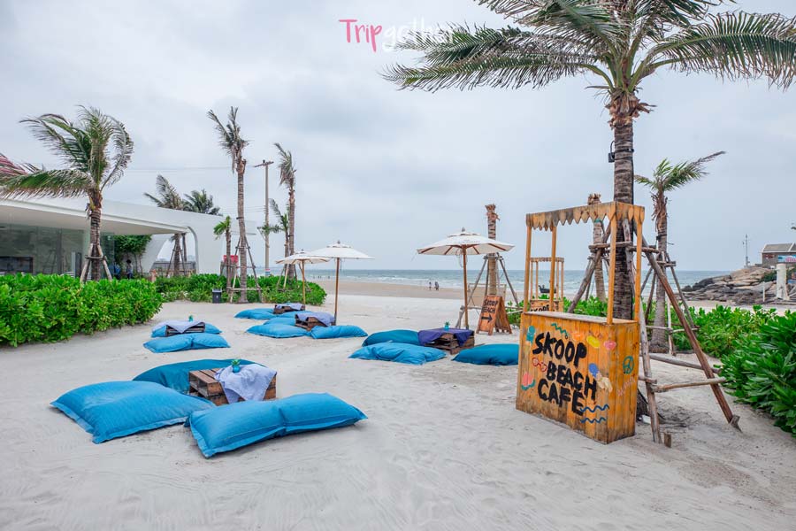 “Skoop Beach Hua Hin” คาเฟ่สุดชิคริมทะเลหัวหิน หลายคนคงคุ้นชื่อดีสำหรับคาเฟ่แห่งนี้ เพราะเป็นคาเฟ่ที่เก๋ ที่ชิคและมีมุมถ่ายรูปเยอะแยะ นอกจากมุมถ่ายรูปจะเยอะแล้ว เมนูอาหารก็น่ารักน่าเลิฟเสียจริง จุดเด่นของที่นี่อีกอย่างคือสามารถสั่งชุดเบรคฟาสได้ทั้งวันนะคะ ใครที่ชอบทานเบรคฟาสเป็นชีวิตจิตใจต้องหลงเลิฟฟแน่นอน ไฮไลท์อีกอย่างคือเมนูขนมหวานทั้งหลาย นอกจากช่วยร้อนแล้วยังตกแต่งมาซะน่ารัก จนไม่กล้ากินกันเลยทีเดียว ใครที่เป็นพวกเสพติดความหวานที่นี่น่าจะโดนใจใช่เลยนะคะ