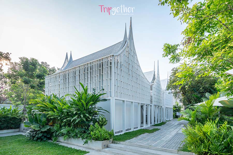 มาเริ่มต้นกันที่ บุษบา อยุธยา ที่พักโฮสเทลเรือนไทยคอนเซ็ปใหม่ที่ให้ความเป็นสากลในรูปแบบบ้านเรือนไทยโมเดิร์น ตัวที่พักโดดเด่นด้วยโครงเหล็กสีขาวลายฝาประกนที่ครอบตัวบ้านเรือนไทยไว้ได้อย่างลงตัว ถึงจะดูโมเดิร์นแล้วอย่างไง๊อย่างไงก็ยังดูเป็นบ้านเรือนไทยที่คงกลิ่นอายของความเป็นอยุธยาได้เป็นอย่างดี เท่านั้นยังไม่พอ ด้านหน้าที่พักยังมีคาเฟ่สไตล์มินิมอลสีขาวสีเดียวกับตัวที่พัก แต่ใช้ชื่อว่า บุษบา คาเฟ่ & มีล ที่รังสรรค์เมนูสไตล์ยุโรปฟิวชั่นกับความเป็นอยุธยาขนานแท้อย่าง สายไหม เส้นใหญ่ทอดและชาแบบไทยๆ มีทั้งที่พักและคาเฟ่ในตัวแถมยังชิคขนาดนี้ ออเจ้าต้องลองมาโดนให้ได้สักครั้ง