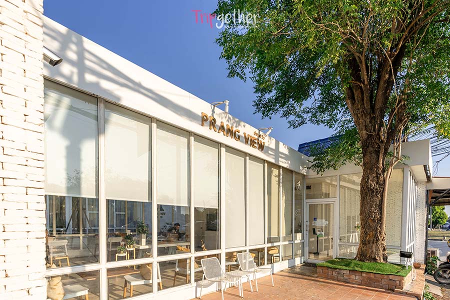 อีกหนึ่งที่ที่มาถึงอยุธยาแล้วต้องห้ามพลาดก็คือ ปรางค์วิว คาเฟ่ คาเฟ่ใจกลางอยุธยาที่ตกแต่งด้วยสไตล์โมเดิร์นสีขาวโดดเด่นที่ใครผ่านไปผ่านมาเห็นแล้วต้องสะดุดตา ภายในตัวร้านตกแต่งด้วยสไตล์สุดชิคแบบที่เรียกได้ว่าถ่านรูปมุมไหนก็สวย และยังตกแต่งตัวร้านด้วยงานศิลปะและยังมีโซนเอ้าท์ดอร์อยู่กลางร้านให้ออกไปรับลมแบบชิลล์ๆ สำหรับที่นั่งภายในร้านก็มีให้เลลือกหลากหลาย ถ้าอยากนั่งชมวิวพระปรางค์ของวัดมหาธาตุไปด้วยก็ต้องเลือกโซนด้านหน้าร้าน หรือถ้าใครอยากได้มุมสงบๆ ด้านหลังร้านก็มีที่นั่งให้เลือกมากมาย และที่ต้องห้ามพลาดเลยก็คือ เมนูเครื่องดื่มสุดเก๋อย่างปรางค์วิวโบเค และของหวานอย่างบิงซูชาไทยไข่เค็ม ที่เป็นบิงซูชาไทย พร้อมครีมไข่เค็มรสชาตินุ่มนวลและบัวลอยเหนียวหนึบที่รับรองว่าอร่อยสุดๆ