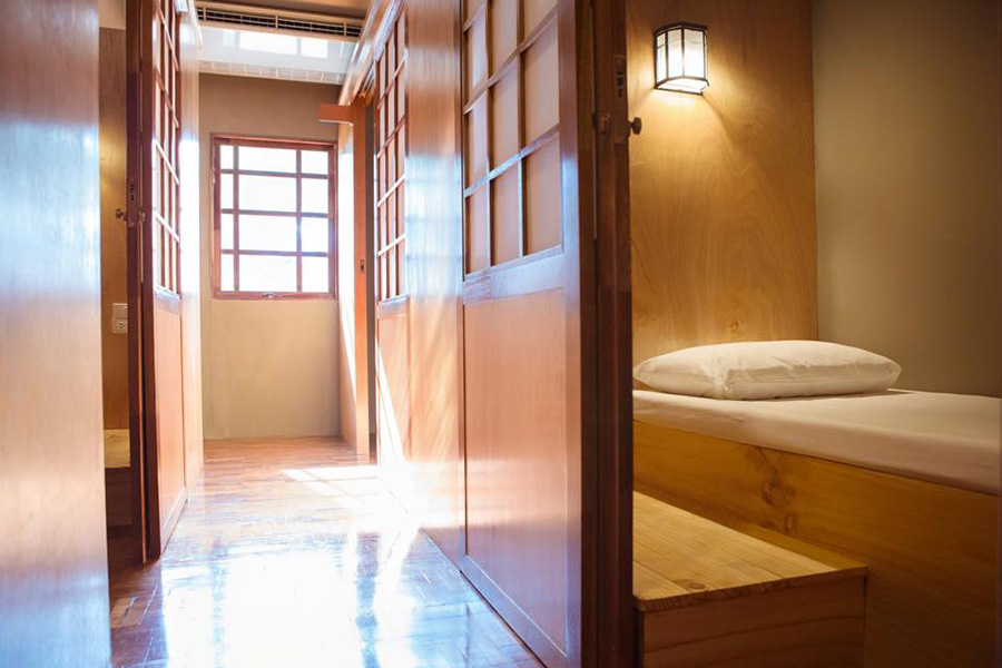 บ้านเมฆ โฮสเทล อีกหนึ่งที่พักสไตล์ญี่ปุ่นที่ตั้งอยู่ในย่านนิมมานเหมินทร์ ตัวโฮสเทลเป็นตึก 1 คูหา สังเกตได้ง่ายๆ คือบริเวณชั้น 1 ด้านหน้าจะเป็นร้านขายขนมโดนัทที่หลายคนรู้จักนั้นก็คือ MOOH บอกเลยว่ามาเช็คอินที่นี้คุ้มสุดๆ มาที่เดียวแต่ได้ถึง 2 ร้าน ซึ่งบ้านเมฆจะอยู่โซนด้านในและบริเวณชั้น 2 เมื่อเข้าไปแล้วรับรองได้เลยว่าเหมือนหลุดเข้าไปที่ญี่ปุ่นจริงๆ เพราะที่นี่ตกแต่งทางเดินเป็นแบบญี่ปุ่น ทั้งพื้นไม้กระดาน ตัวห้องพักและฝาผนังก็ถอดแบบมาจากญี่ปุ่นเป๊ะๆ แถมยังมีที่นั่งเล่นและมุมถ่ายรูปให้เช็คอินกันแบบชิคๆ เรียกได้ว่ามองไปทางไหนก็ได้ฟีลญี่ปุ่นทุกมุมเลยจริงๆ ที่นี่เลยเป็นอีกหนึ่งชุดเช็คอินสไตล์ญี่ปุ่นที่ต้องลองมากันสักครั้งนะครับ