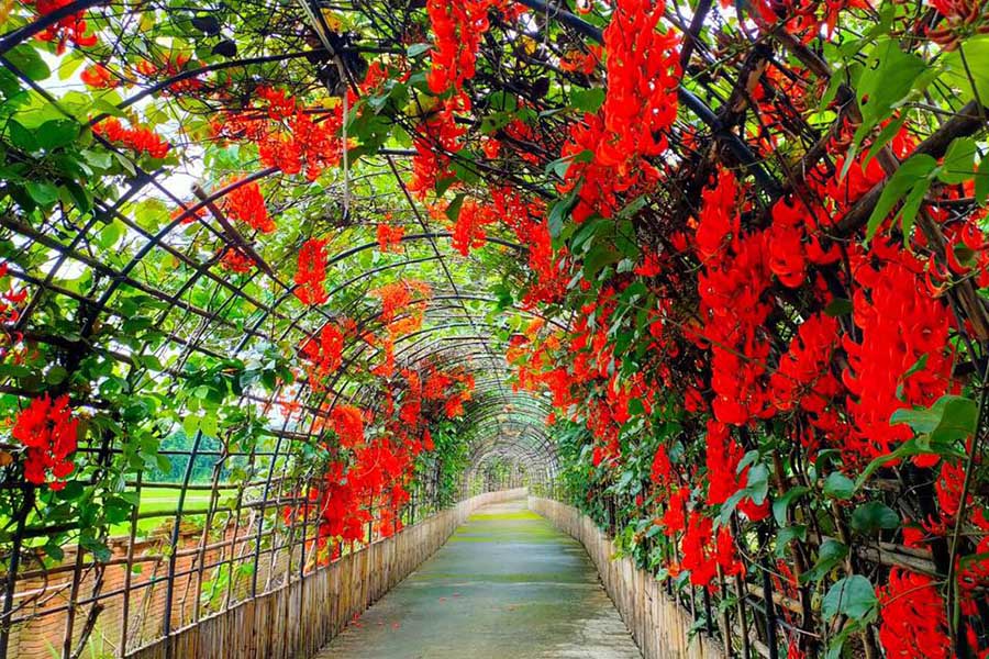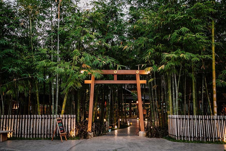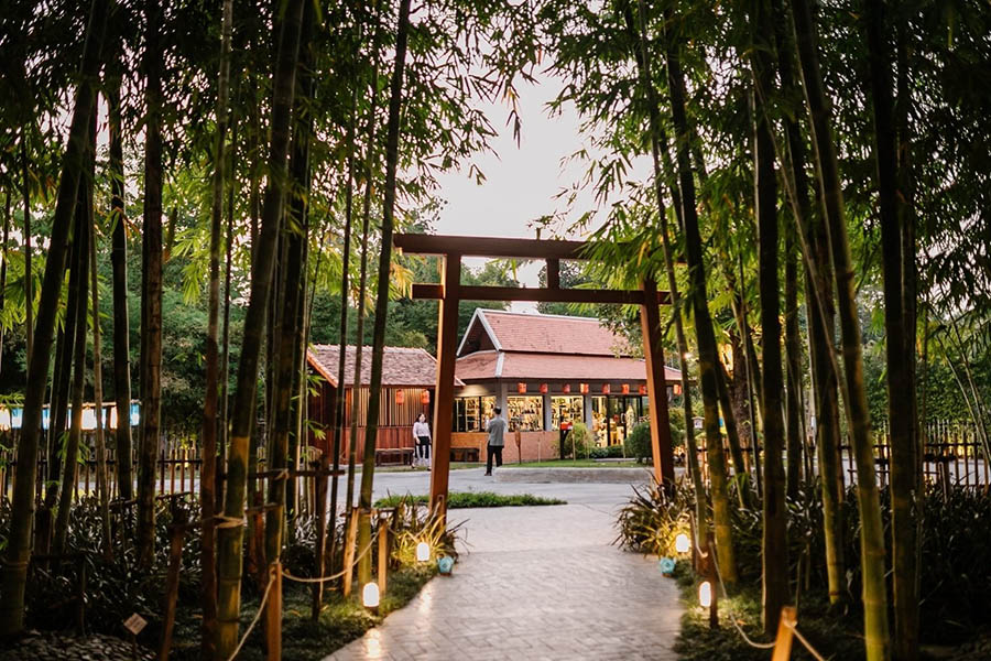 แบมบู โกลบ อุโมงค์สวนไผ่ อีกหนึ่งจุดเชคอินสไตล์ญี่ปุ่น ที่นี่เป็นทั้งที่พักและคาเฟ่ท่ามกลางบรรยากาศของธรรมชาติ ส่วนที่เป็นไฮไลท์เลยก็คือ อุโมงไม้ไผ่ที่ทอดยาวเป็นทางเดิน คล้ายกับป่าไผ่ซางาโนะแห่งอะราชิยามะ ประเทศญี่ปุ่น ที่มีทั้งมุมอุโมงค์ไม้ไผ่และมุมเสาโทริอิ ซึ่งโซนที่ว่านี้มีต้นไผ่มากถึง 1,700 ต้น บรรยากาศร่มรื่นสุดๆ ลองแวะมาเช็คอิน หรือมานั่งจิบกาแฟชิลล์ๆ ถ่ายรูปกับอุโมงค์ไม้ไผ่กันที่นี่กันเลย ได้ทั้งภาพสวยๆ บรรยากาศดีๆ กลับไปอย่างแน่นอน