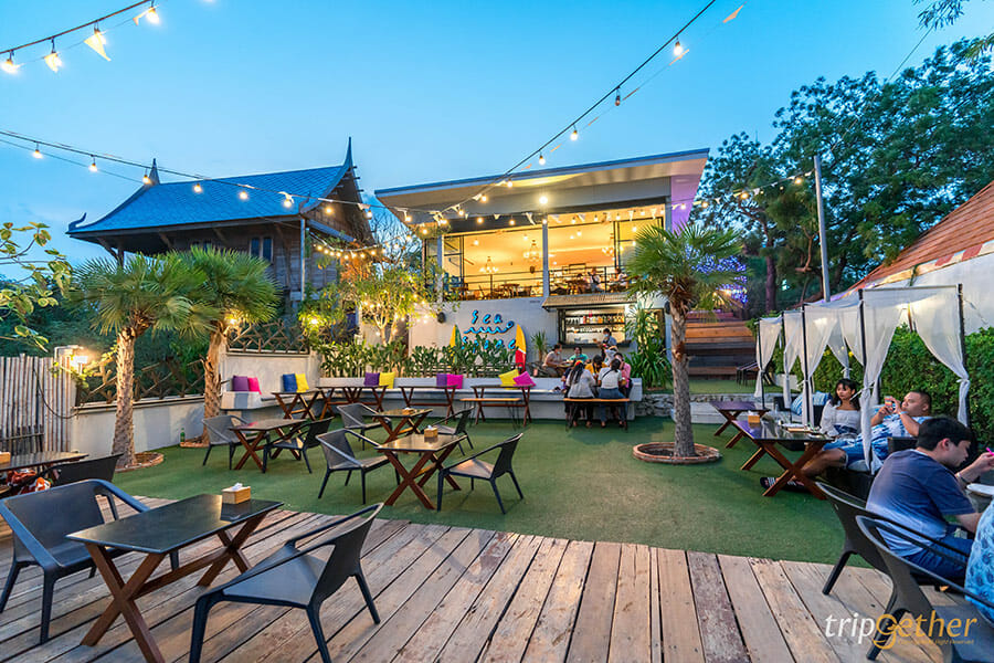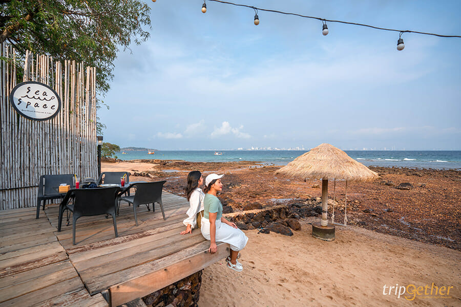 Sea Space เกาะล้าน คาเฟ่สวยบนเกาะล้านที่ตั้งอยู่ในซอยสุดไพรเวทสามารถขับรถเข้าไปเพียง 100 เมตร ภายในร้านมีทั้งโซนอินดอร์และเอาท์ดอร์ ซึ่งเลือกนั่งชิลล์ได้ทั้งในห้องแอร์ที่มาพร้อมการตกแต่งสไตล์โมเดิร์นประดับตกแต่งไปด้วยโคมไฟสีวอล์มไลท์ดีต่อใจสุดๆ ในส่วนของโซนเอาท์ดอร์อยู่ติดริมทะเลเลยมาพร้อมบรรยากาศสบายๆ เลือกนั่งได้หลากหลายมุมเลย ที่พร้อมเสิร์ฟอาหารทั้ง ปลากะพงสามรส, ห่อหมกทะเลมะพร้าว, ข้าวผัดสับปะรด และยำแมงกะพรุน ที่บอกเลยว่าไม่ควรพลาด